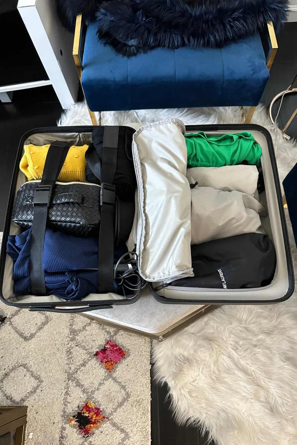 And I was so happy that it takes up way less space. And my suitcase closes perfectly after packing the cosmetics bag.