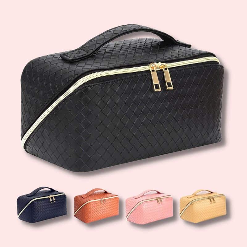 Even if the cosmetics bag costs only $25.99, the Bottega Veneta inspired weave pattern makes it look way more expensive.