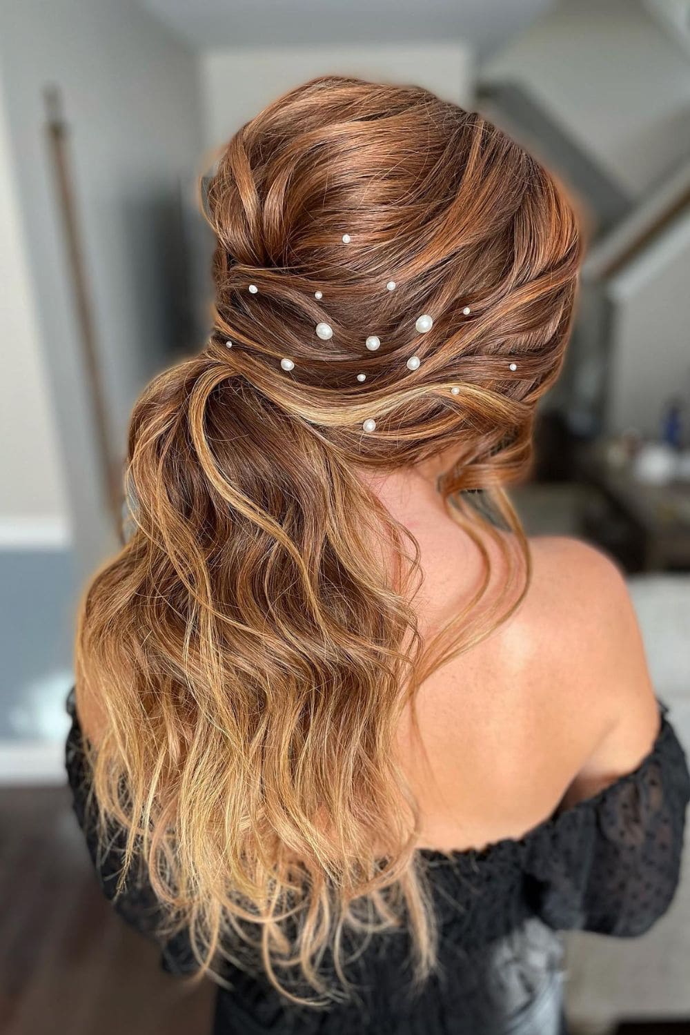 Wavy Low Ponytail With Pearls