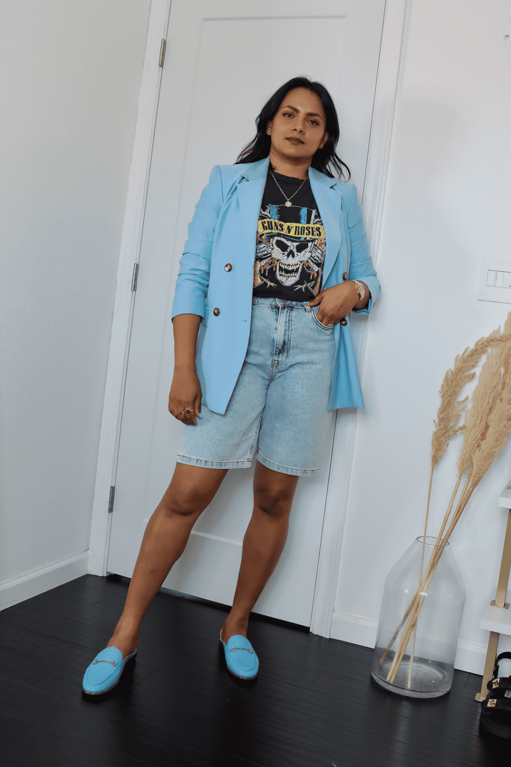 Blazers are an excellent swap for casual jackets and in this casual outfit they are bringing in the much needed structure and sophistication that makes this outfit Effortlessly Chic.