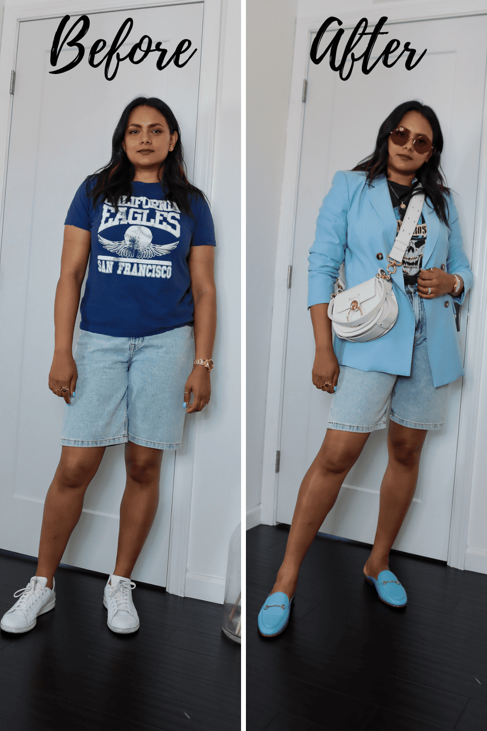 You can clearly see how grown up the transformed outfit looks. It looks chic and sophisticated even with shorts. you can easily wear this outfit on Monday for business casual dress code and still look put together.