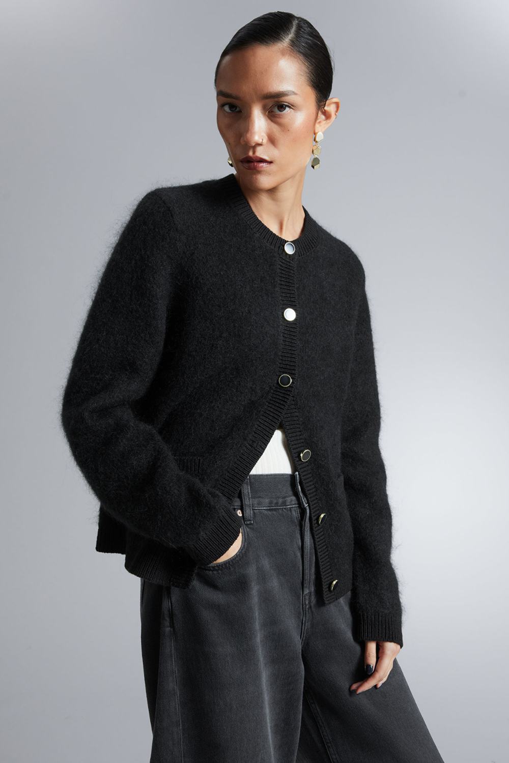 But since this is a short length, it looks stylish with wide leg pants even wide leg joggers. And nothing better than a black short cardigan that you can wear with all your travel outfits.