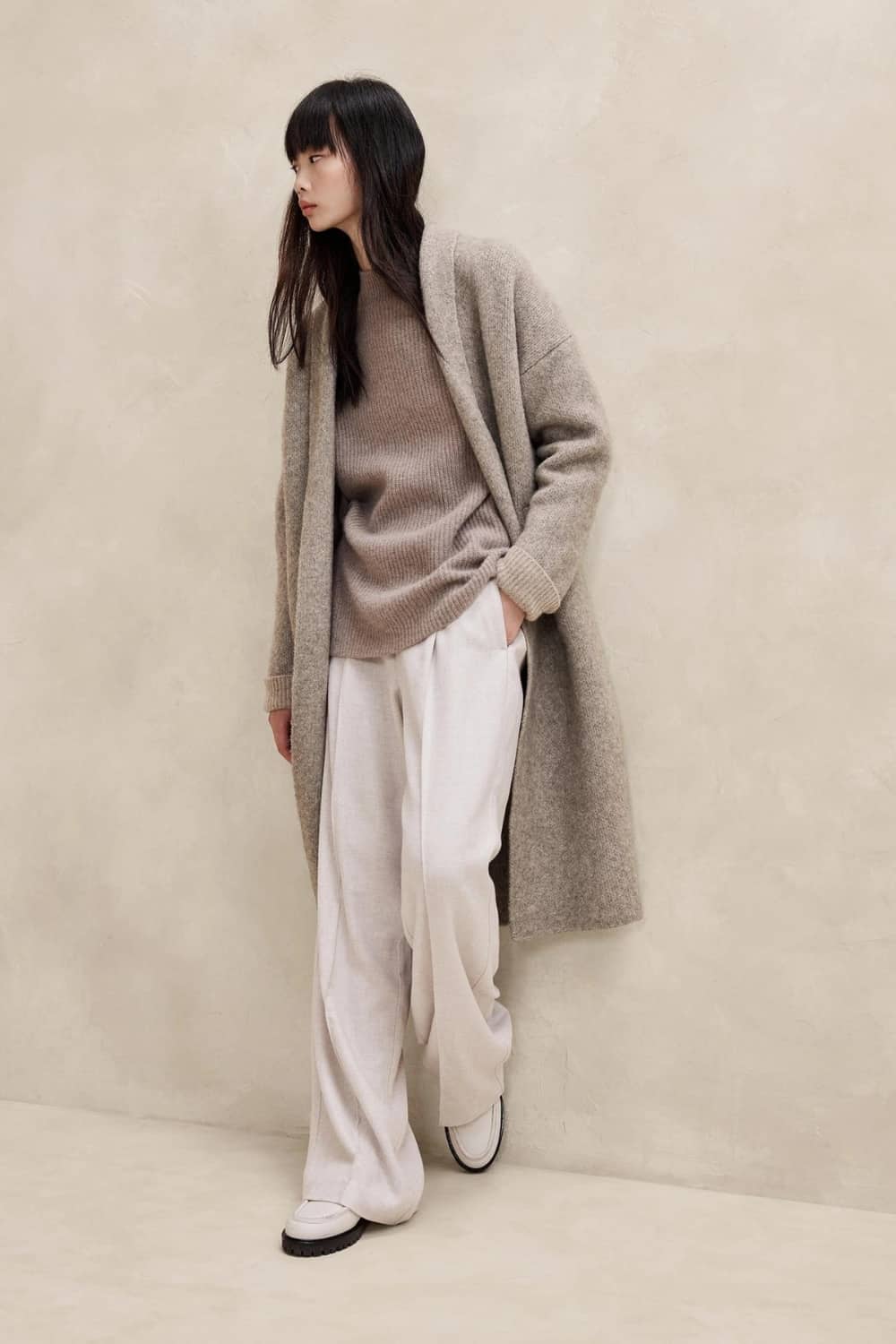 - Knit fabric for cozy third layer over travel outfit.