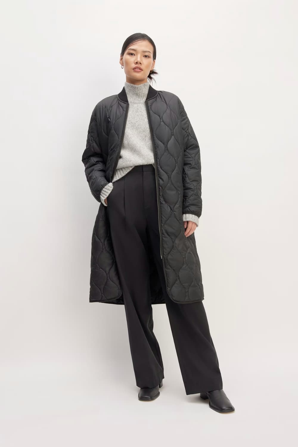 Quince Featherless Puffer Jacket is exactly what you need. It’s lightweight, looks modern and sophisticated.