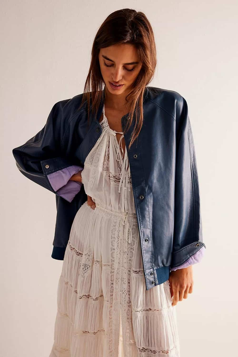 If you have a casual edgy style aesthetic but a leather Moto jacket feels really uncomfortable, you need an oversized bomber jacket instead. The bomber style is usually baggy with loose fit sleeves and body.