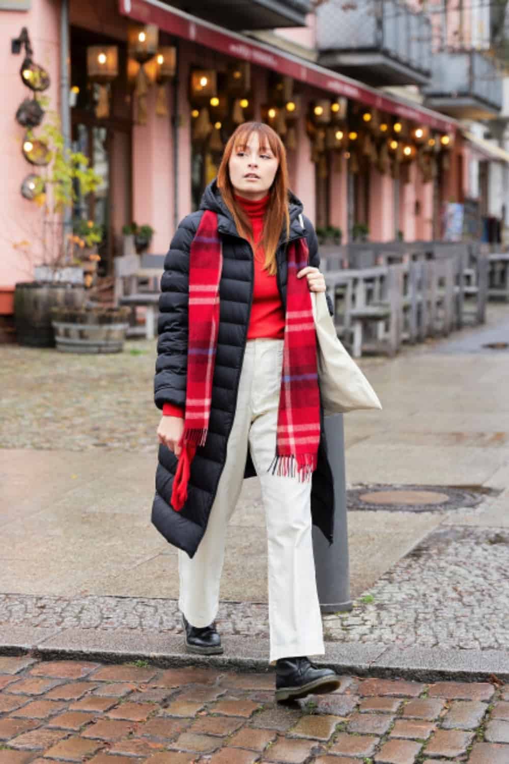 The best alternative to long quilted coat is a mid length one, and if it’s oversized it’s going to be really comfortable while wearing in the airplane. It still has the quilted style, so it looks classy and sophisticated in a way elevating your airport outfit.