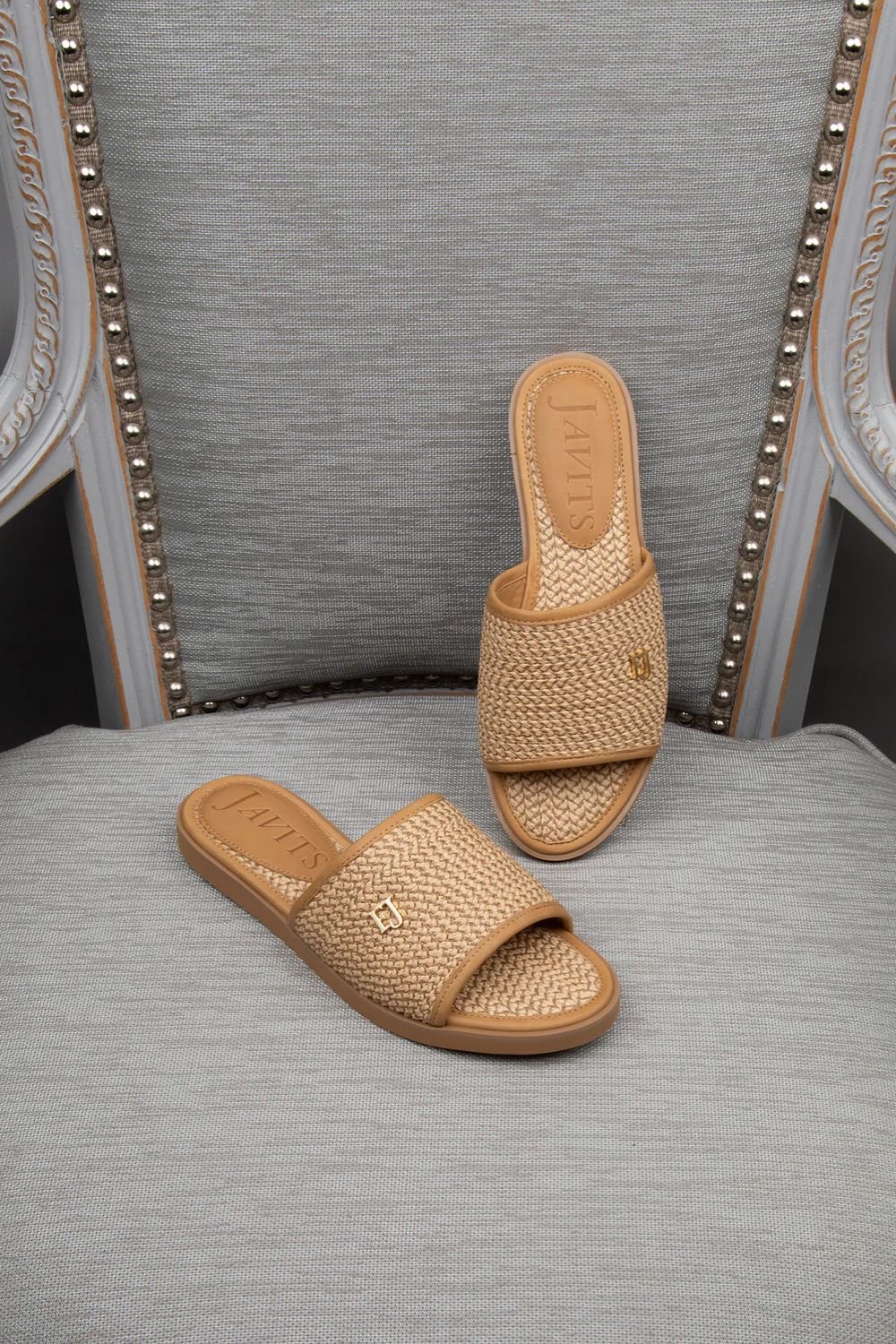 The EricJavits Squeshy Slides will be the most comfortable slides you have worn. Because they are made of squishy rubber sole and raffia fabric in the upper sole.