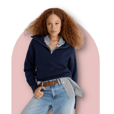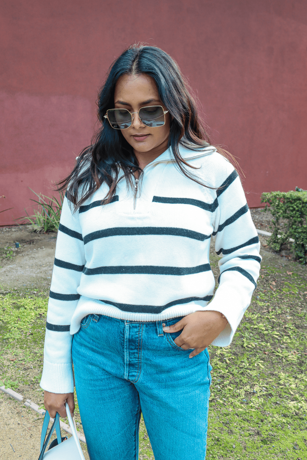 I would say this is the perfect alternative to sweatshirts which actually looks much more structured and put together. I have never been a big fan of sweatshirt that always have an oversized silhouette. But the zip style sweater gives you the collar detail of a sweatshirt but without the bulkiness.