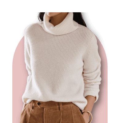 The turtleneck style always hides my double chin and makes my face appear slimmer. And another style of sweater that is either long or short looks great with jeans or leggings.