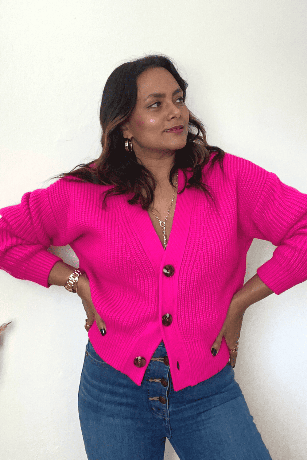 The V neck is laid back and the button details add a put together touch to your outfit. I find this style of sweater much more versatile and elevated compared to the round neck cardigans.