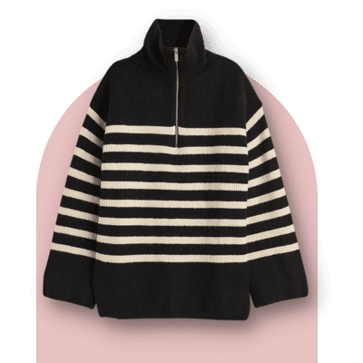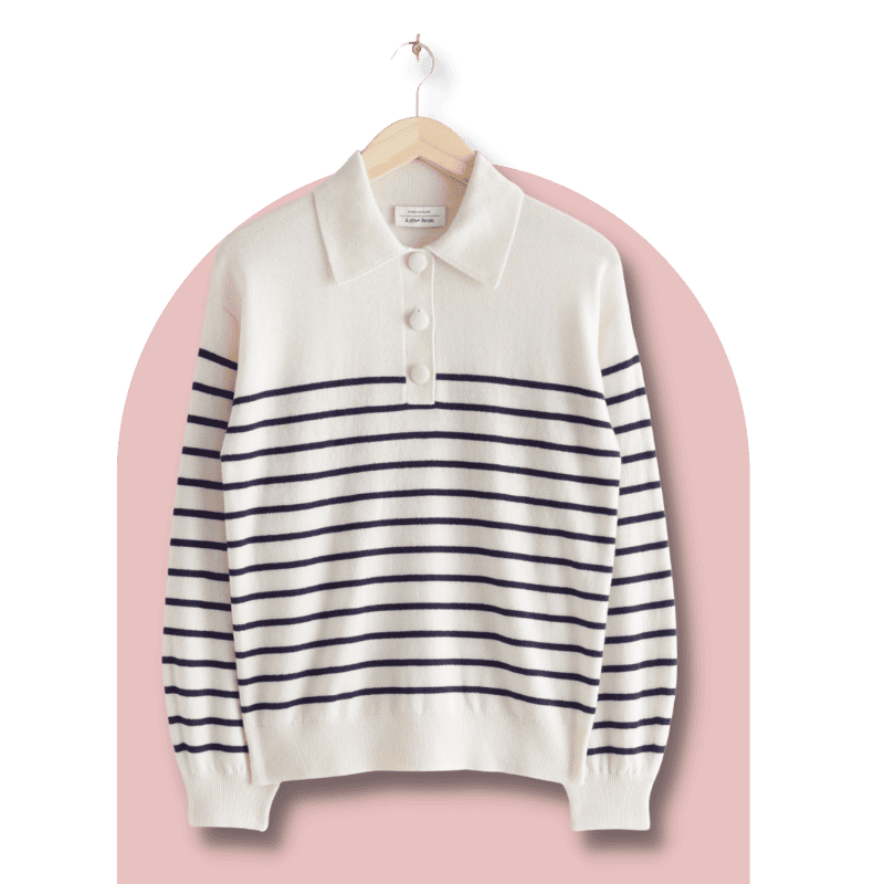This is not really focused to the design of the sweater but the striped pattern. Breton stripes are a much more elevated stripes that do not make you look fat or are too busy on you like regular striped sweaters.