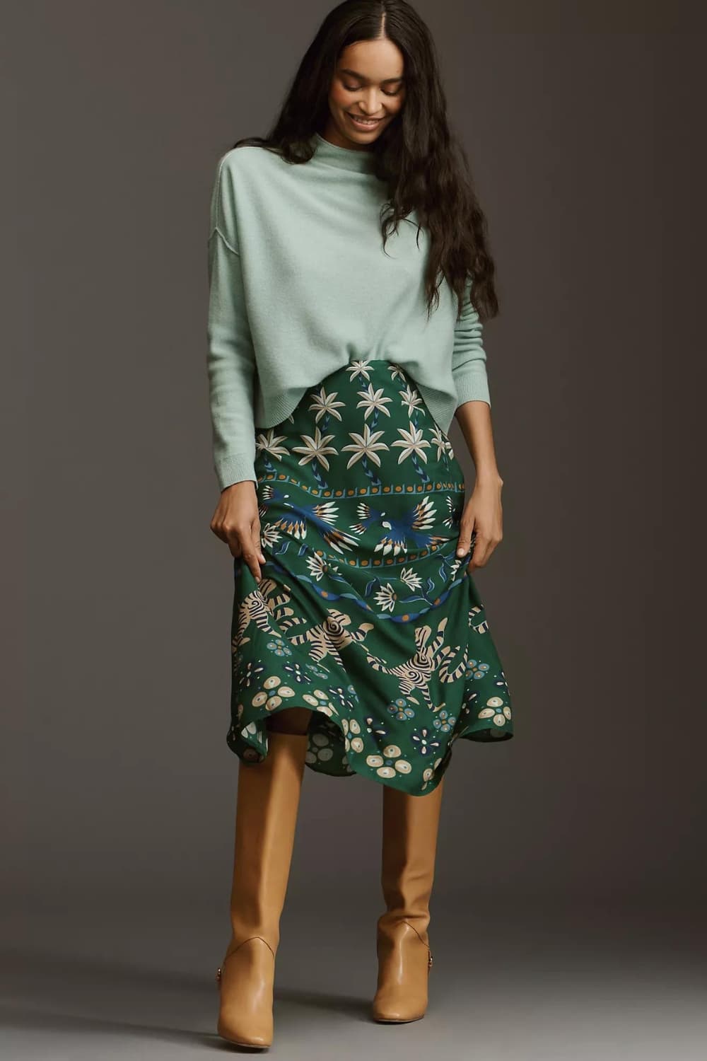 Printed Satin Skirt With Oversized Sweater