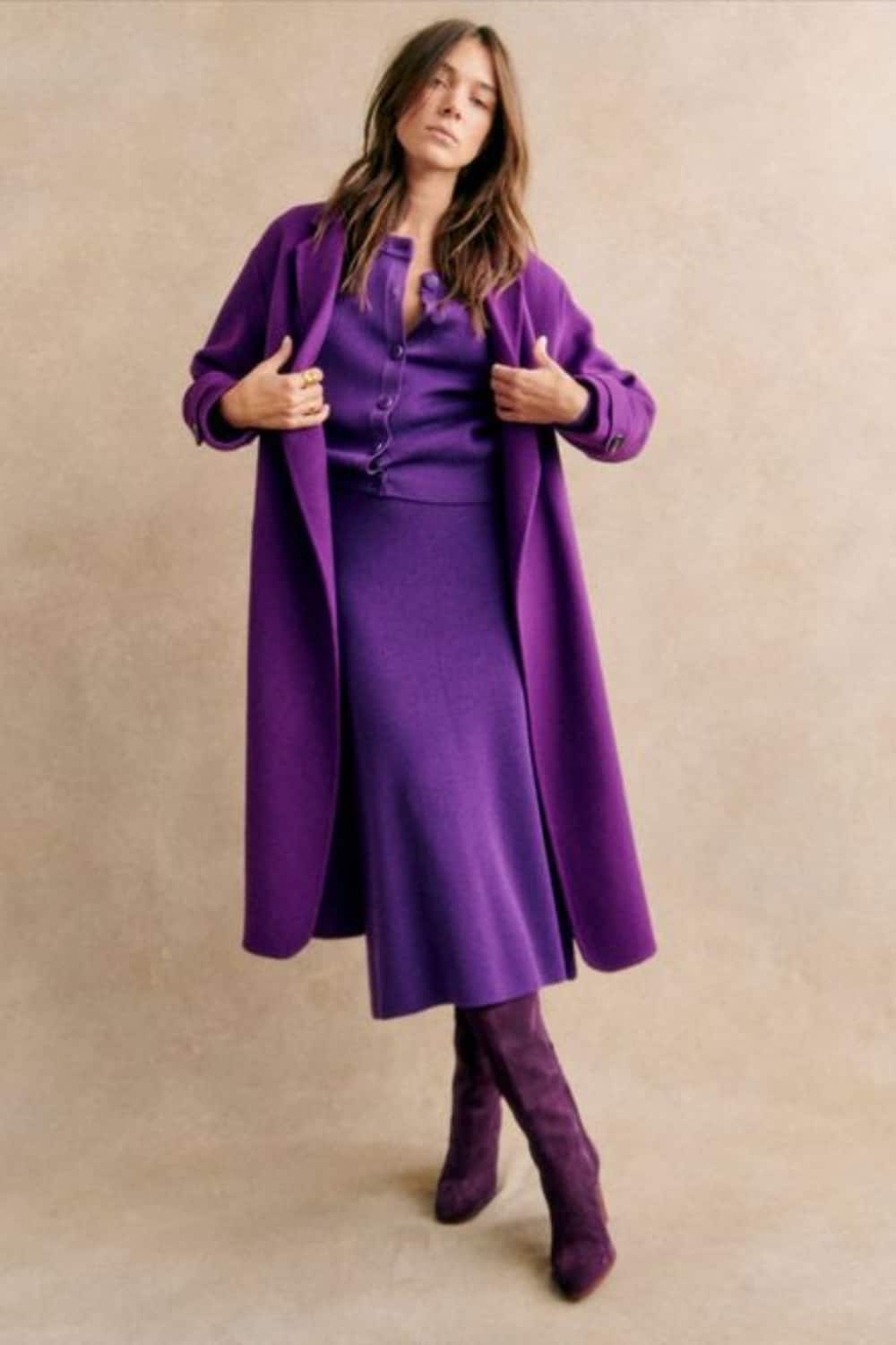 Matching Sweater and Coat with Blue Wide Leg Jeans