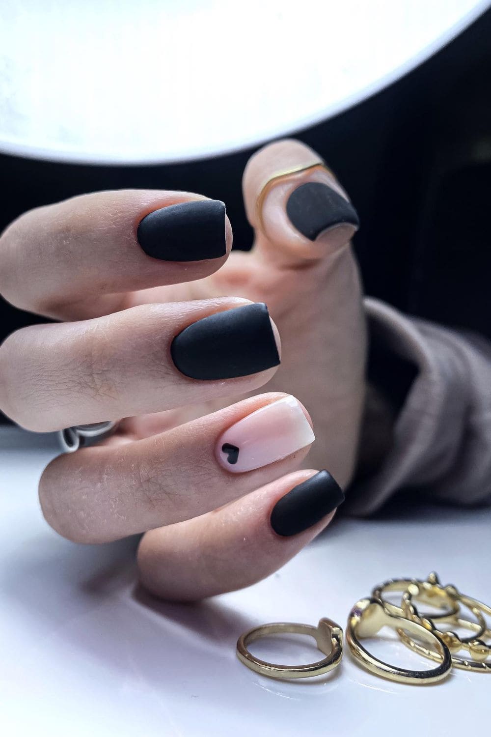 Bold and quintessential to your selection of Fall looks, it wouldn’t be a complete guide without mentioning black nail polish. Who doesn’t enjoy the aesthetic of a clean cut back look? Effortlessly chic, and gives you the demeanor of someone who is always put together. You can pair the black nail polish with any design, but adding a simple idea like a small heart is suitable for everyday wear. To add more dramatic flare, choose a matte top coat that will instantly sleek-ify your manicure.