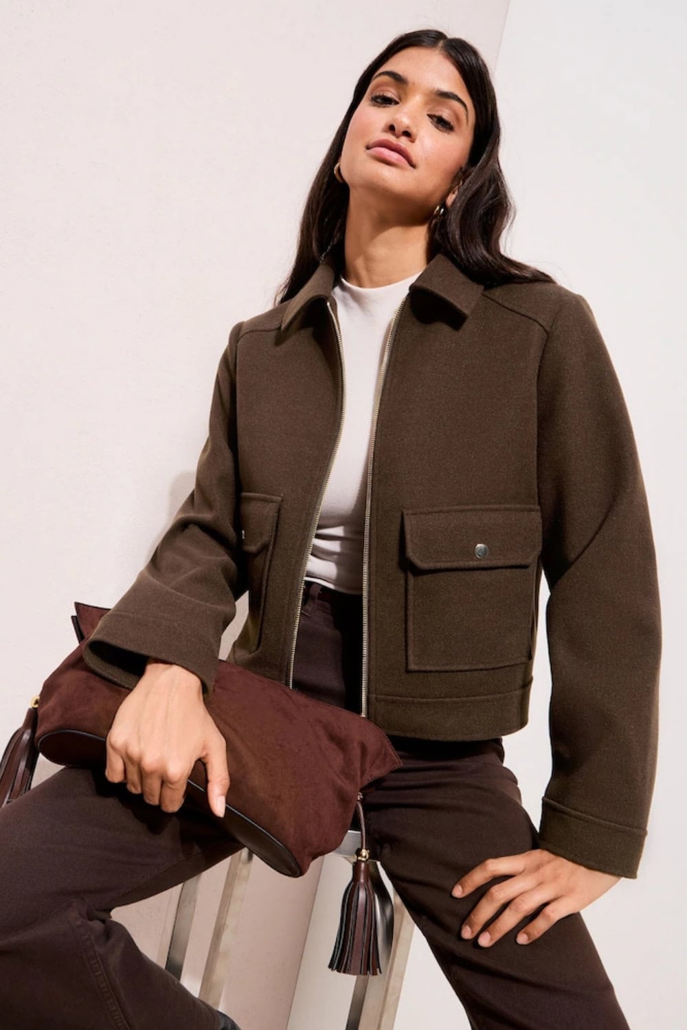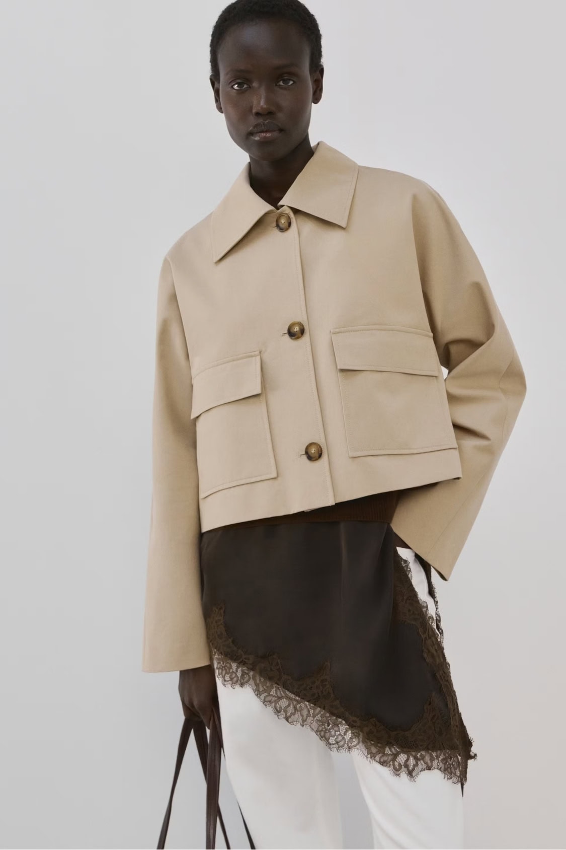 This is perfect for this casual yet chic moments. A cropped trench jacket has the collar detail of the trench coat, but it’s cropped, so it actually looks casual.