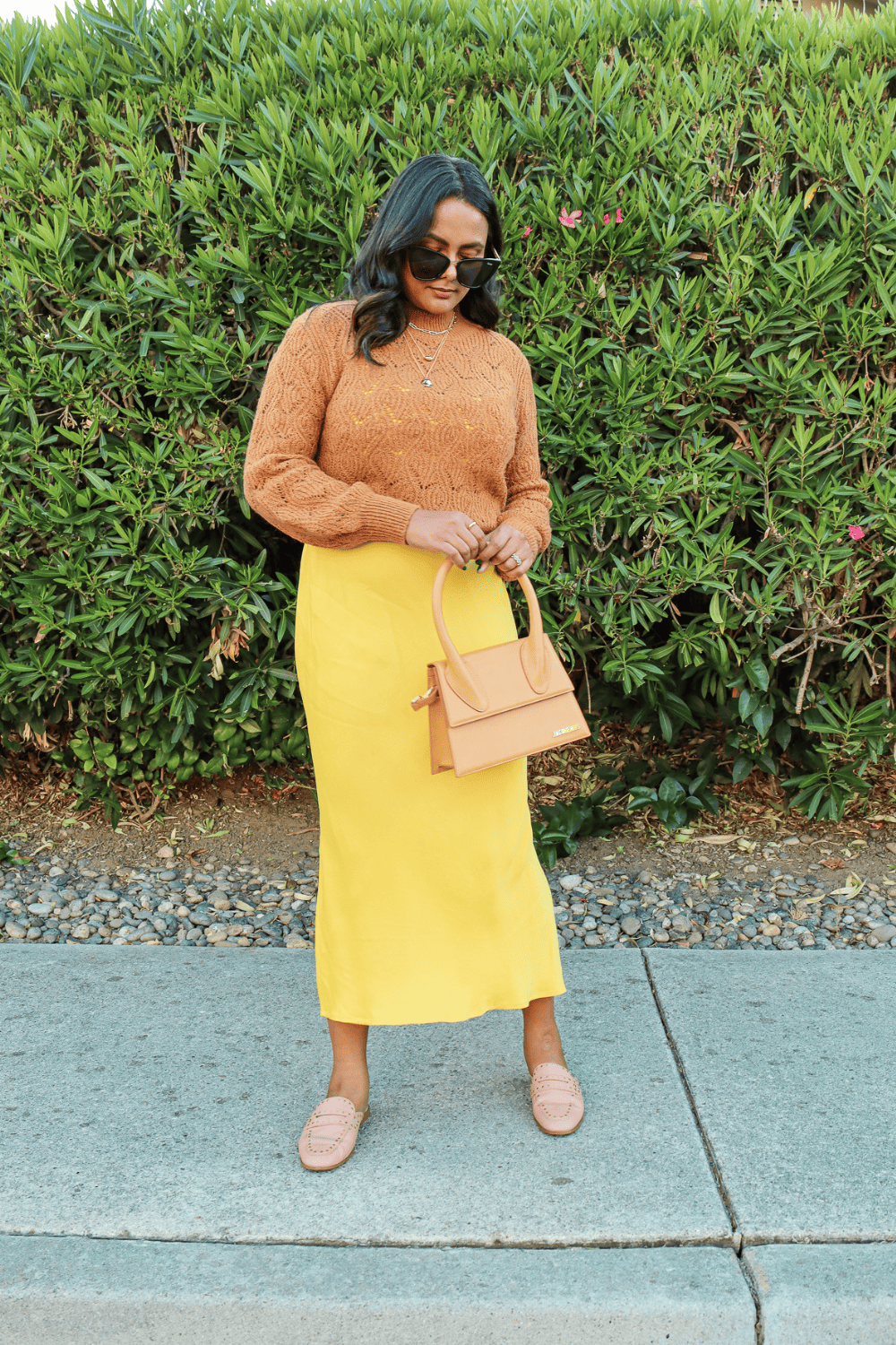 This slip dress is the perfect fall color that you can also wear through winter as a party dress. Sharing two easy ways you can style them for fall.