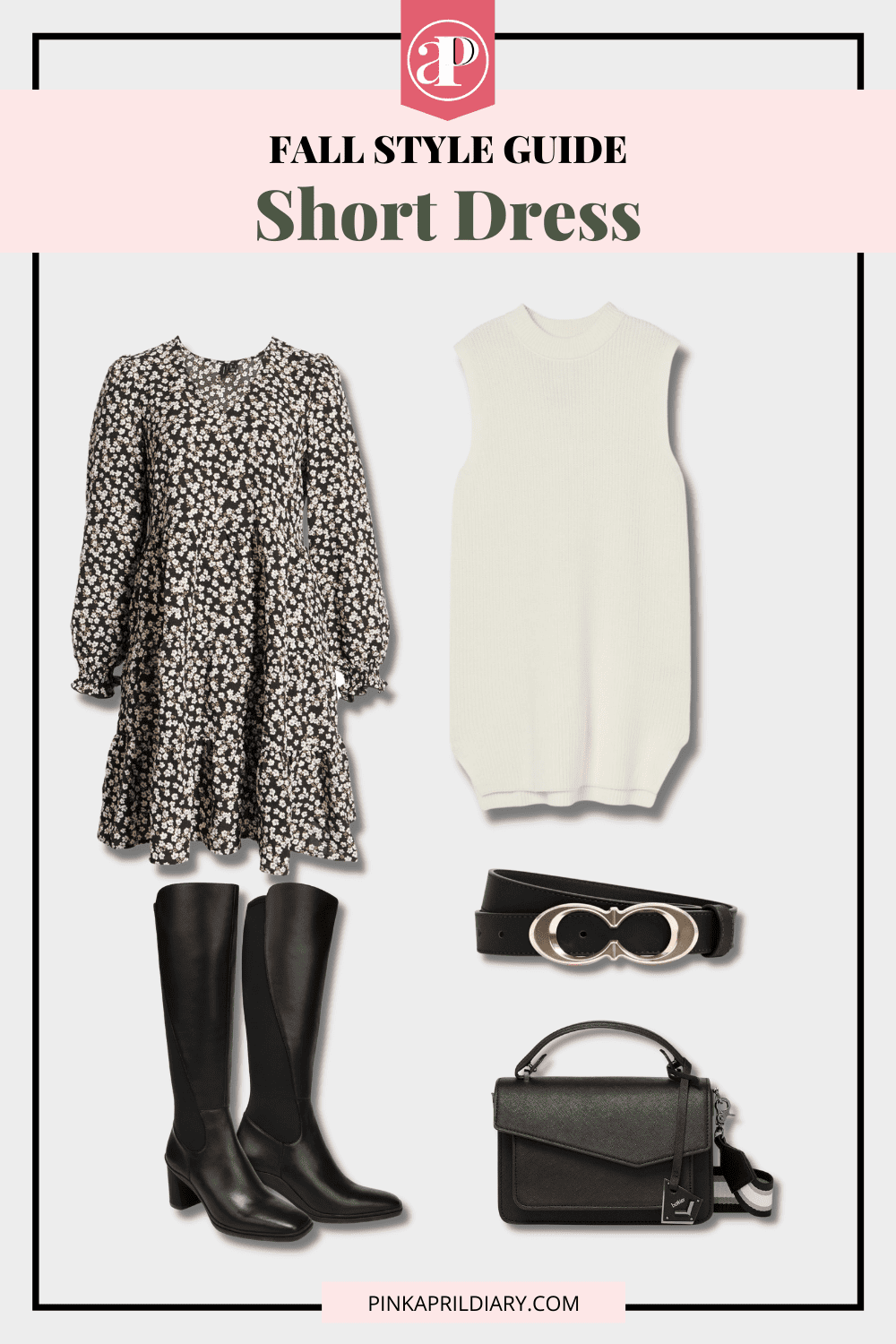 A long sweater vest will look perfect with this short dress adding a much needed layer. And a tall boot will complete the fall look and also keep you cozy.