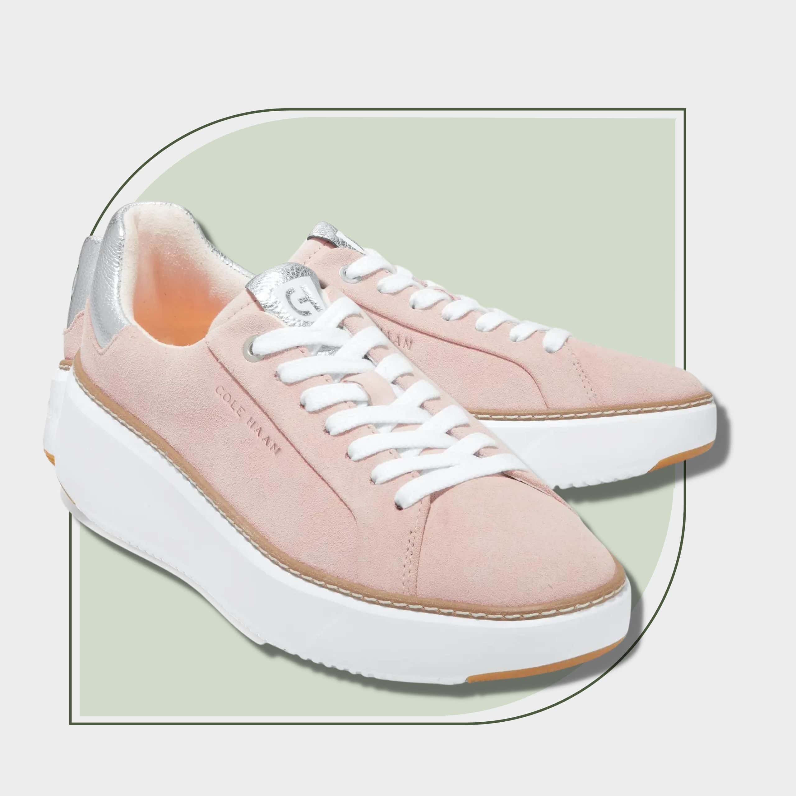 You can decide to wear leather or pick something more subtle like these suede sneakers which look fun in this blush tone color. But because of the shade they are versatile as well.