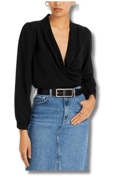 Wrap tops are beautiful, feminine, and breezy going out tops to wear with jeans. If you’re going out for brunch with the girls or you’re seeking a look that can easily translate from day to night, add some wrap tops to your wardrobe.