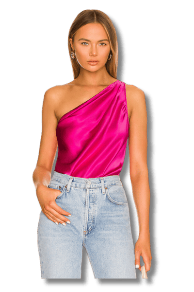 One shoulder tops are another excellent option when it comes to going out tops to wear with jeans. One shoulder tops are similar to off the shoulder tops, but exposing just one shoulder may be better for those colder nights. Additionally, exposing one shoulder is classy and modest. This asymmetrical style is sure to make any going out outfit more interesting.
