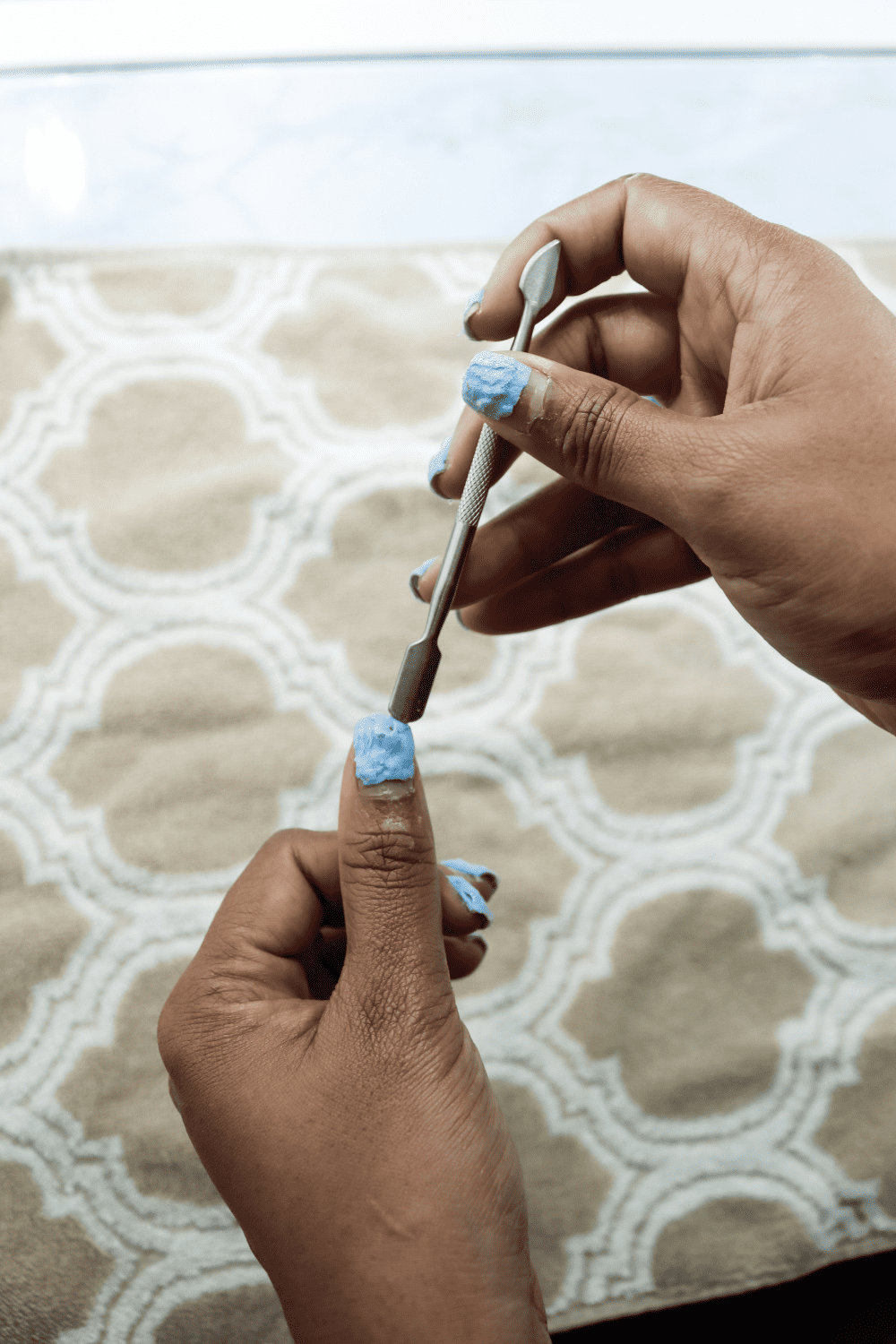 Once you feel like most of the polish looks like its ready to come off. Use the cuticle pusher and slowly and gently scrape your nails. You will be absolutely surprised, how easily it comes off.