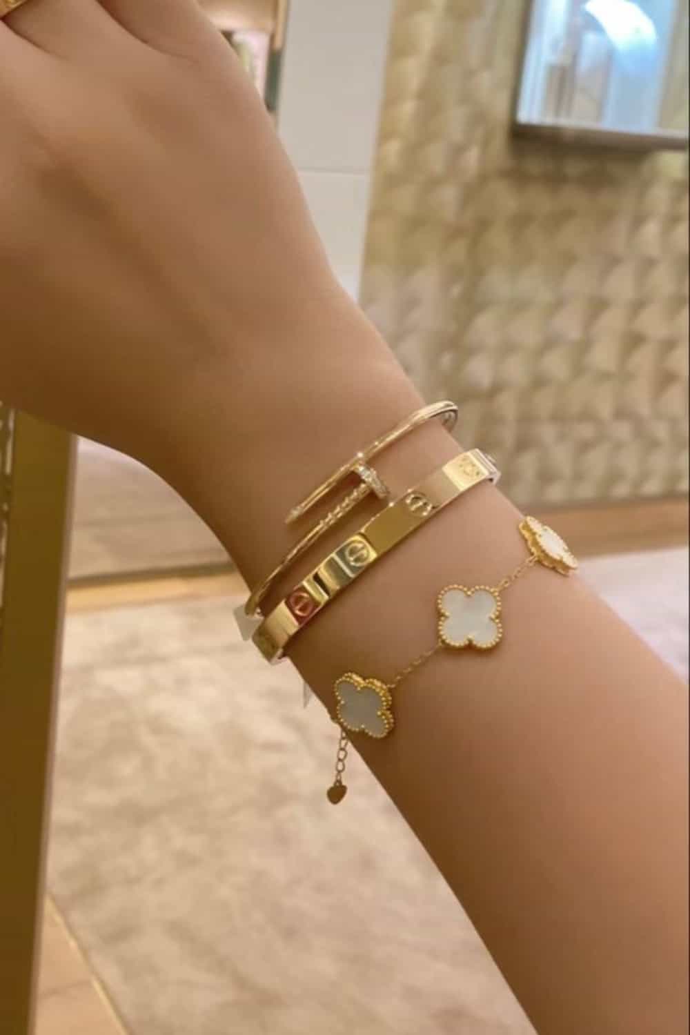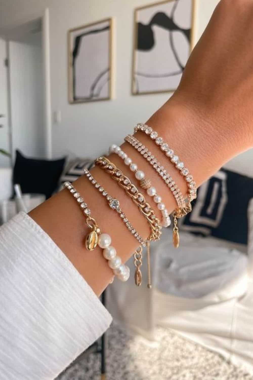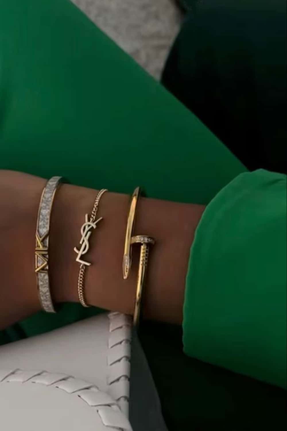 This ways of bracelet stacking gives an old money aesthetic to your outfit.
