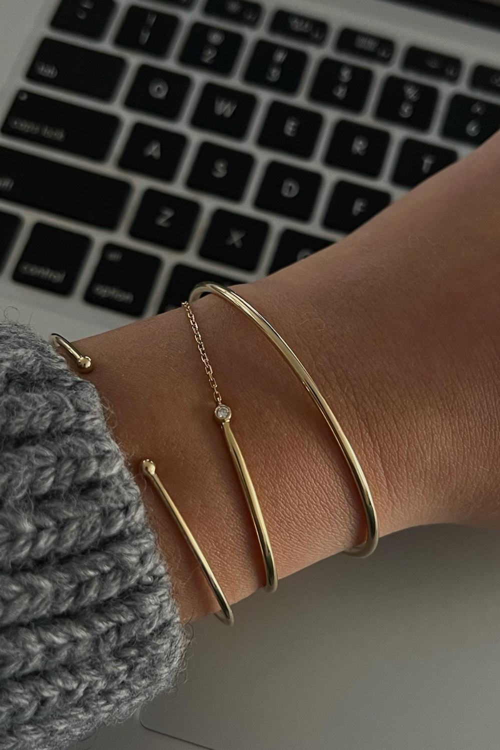 To prevent your bracelets from tangling, consider using a mix of bangles, cuffs, and stretchy bracelets that are less likely to intertwine. Additionally, layering a few bangles over a single cuff bracelet can minimize tangling.