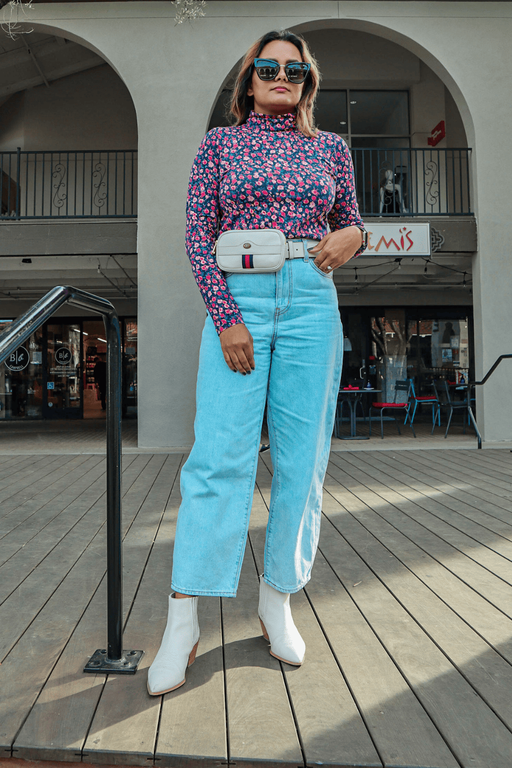 I love a dark and white color pairing, this way the contrast in color creates such a chic look. And these jeans are curve friendly as well.