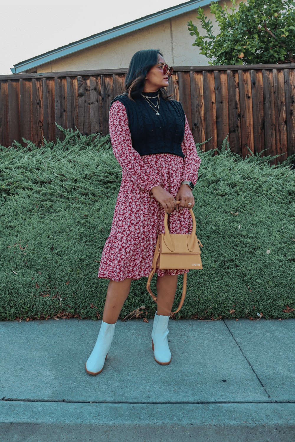 These ankle boots look really flattering with sweater dresses as well. I love midi sweater dresses because then I do not have to worry about wearing tights to feel cozier.