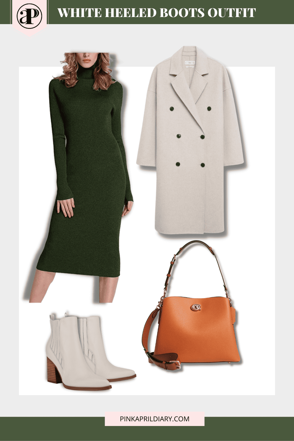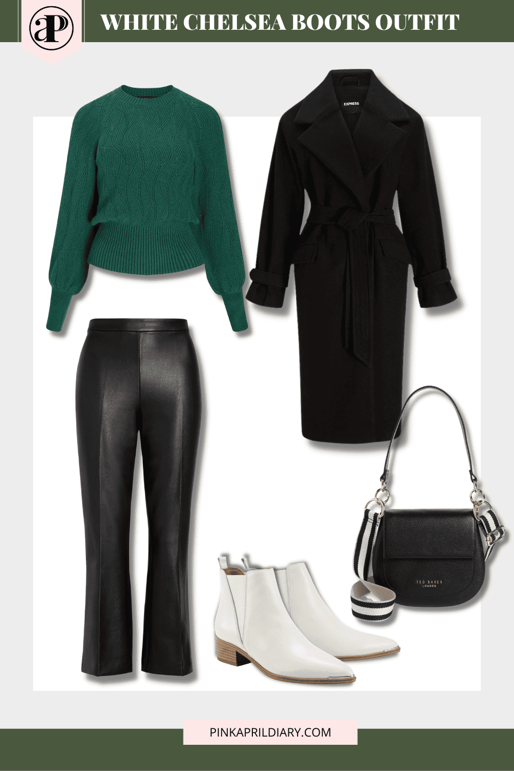 In this outfit, I wanted to incorporate some colors, so I picked out a green sweater just to give you an idea that even if you wear black bottoms and a colored top, you can still wear these white Chelsea boots which will effortlessly compliment the entire look.