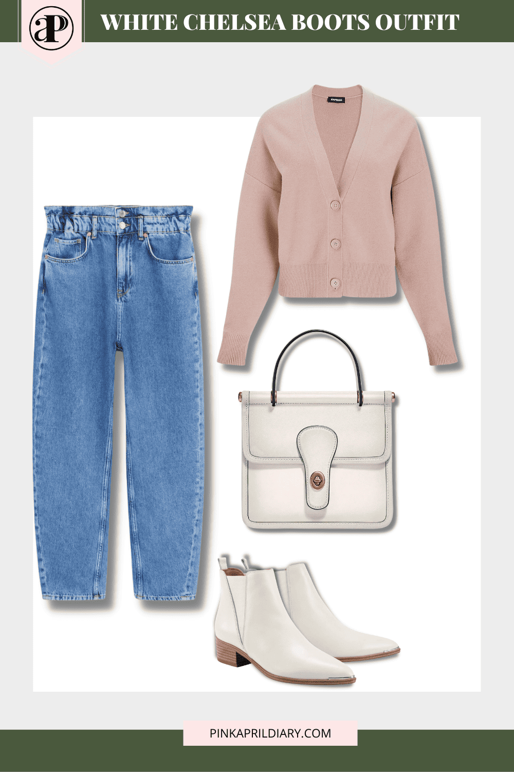 The jeans in these outfits are cropped and frayed which looks effortless and is easy to style with these white Chelsea boots.
