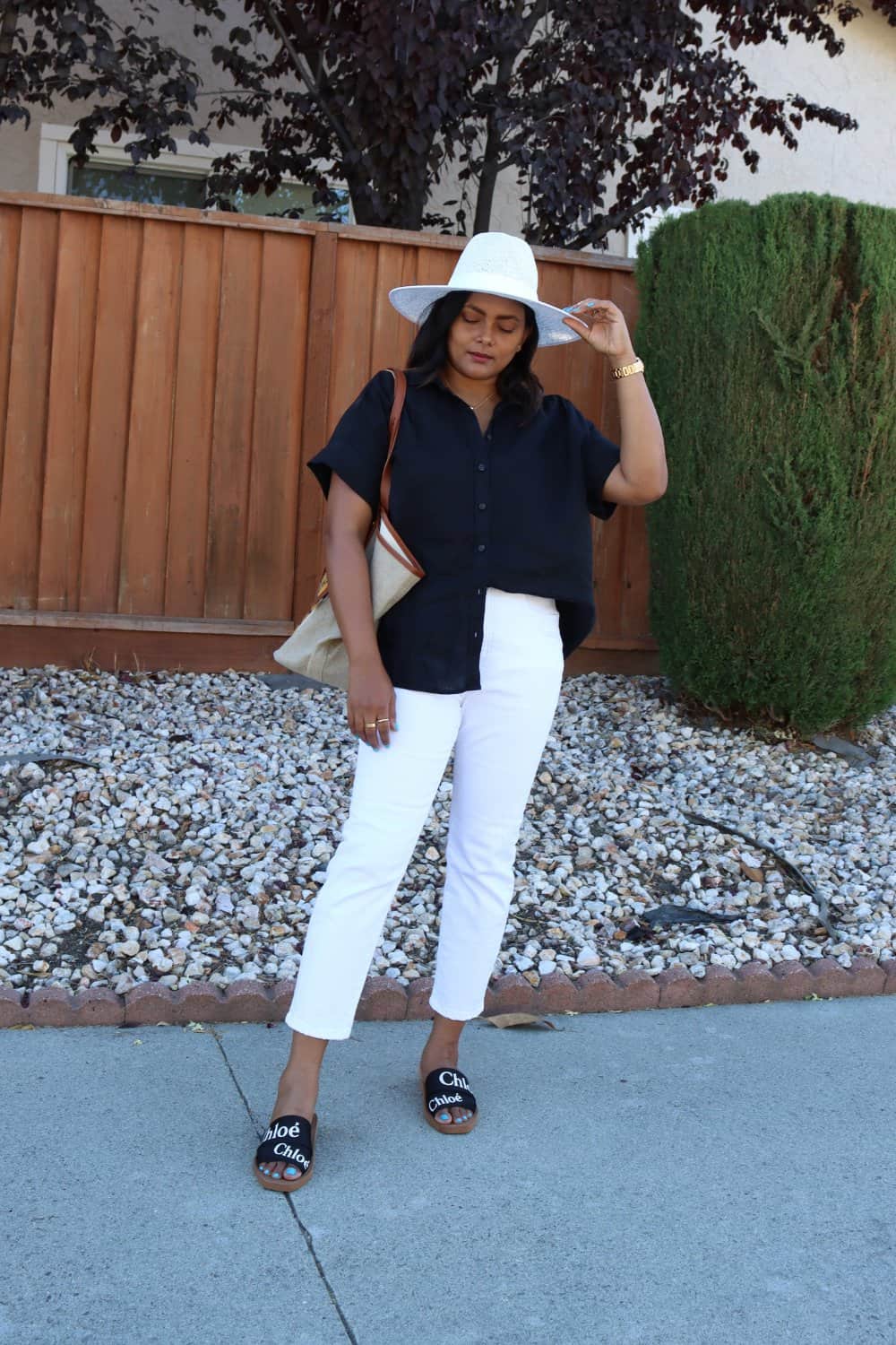 I have been rocking black straw hat with all my summer looks even white outfits. It just looks really chic.