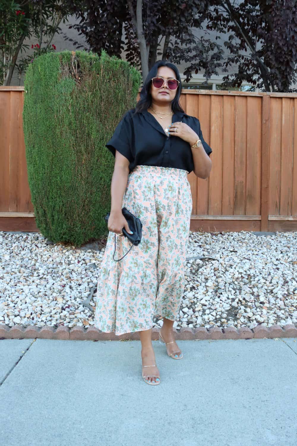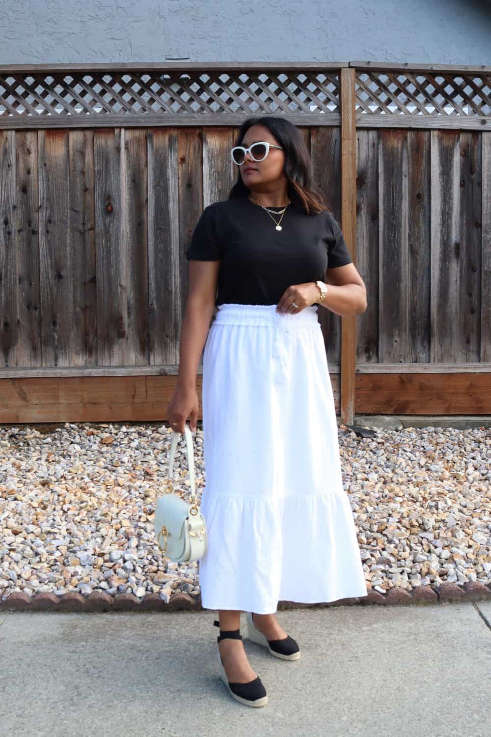 And if you want to wear black in summer, what better way than to pick a black tiered midi or maxi skirt that you can style with all the printed tops and also with black tops if you like.