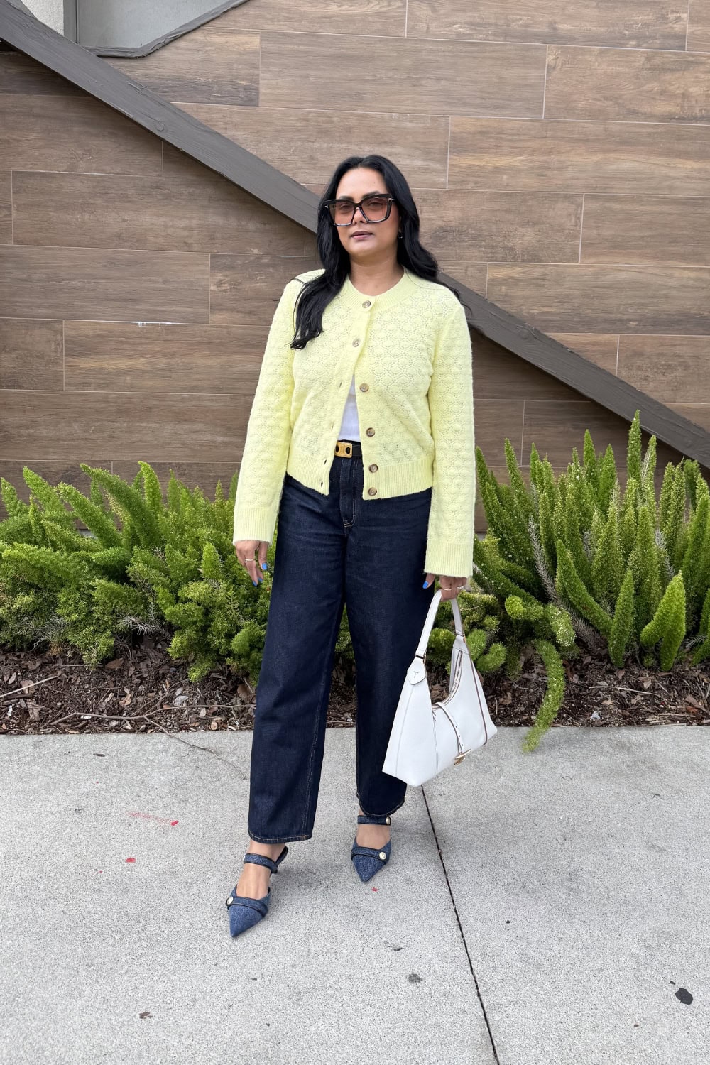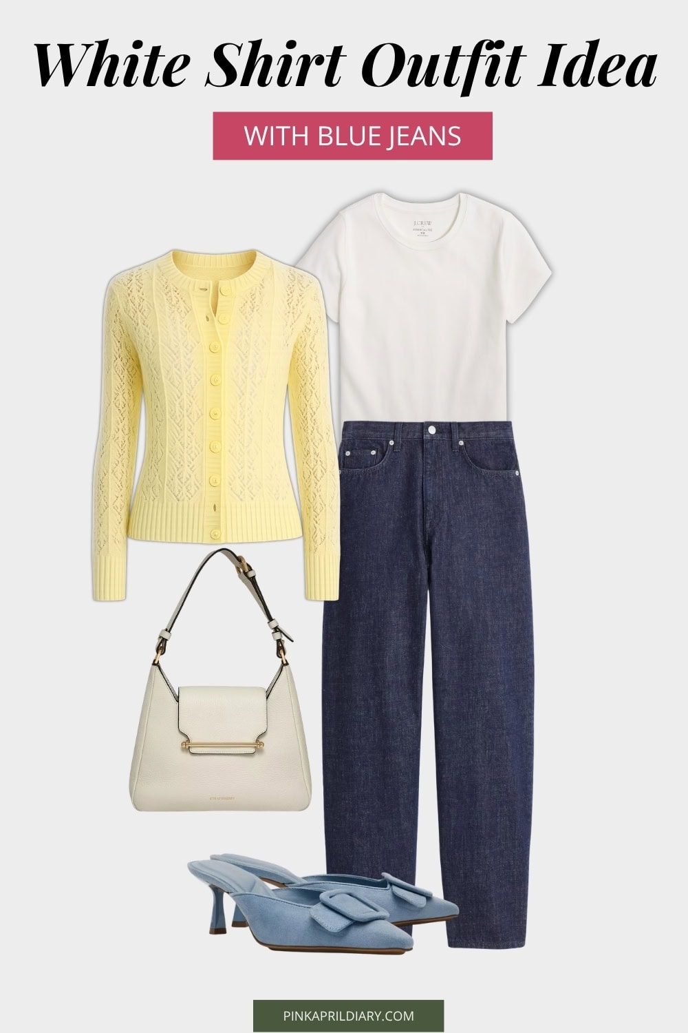 [Cardigan] [White Jeans] [Loafer Mules]