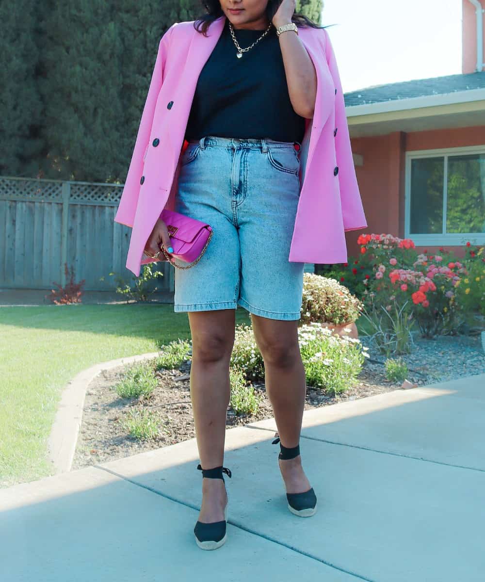But pair it with a pink blazer and add some cute footwear and you have yourself a cute casual and elevated outfit.