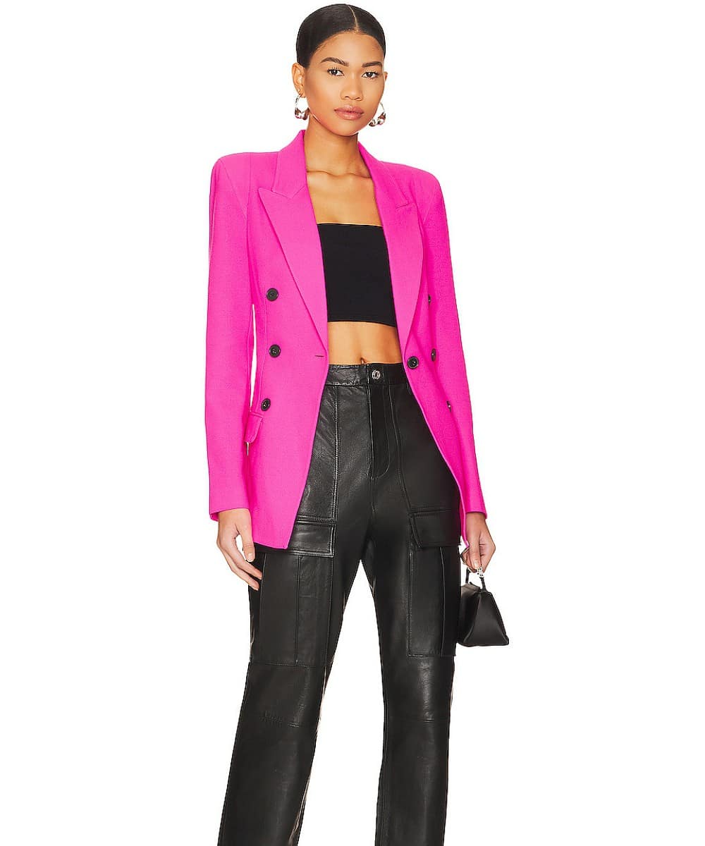 Pink blazer paired with something red looks powerful and playful at the same time. This is the best playful color combo an adult woman can wear and still look put together.