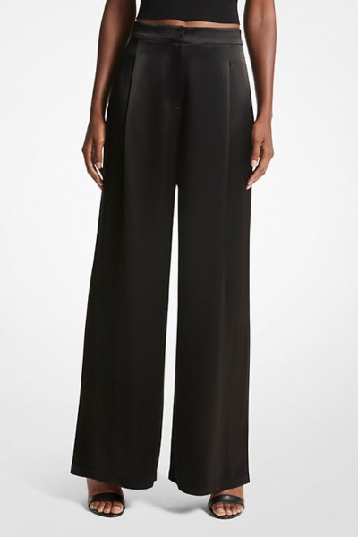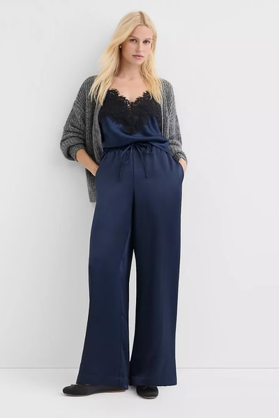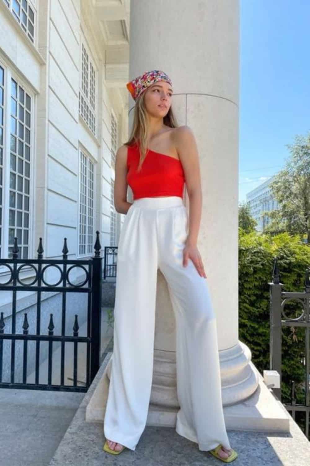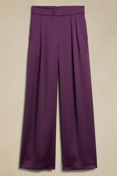 In terms of style, pick wide leg satin pants. Satin is not a very sturdy material, so in pants style they will be flimsy. If you pick narrow leg ones, it will easily grab onto your skin and not feel appropriate. So, instead pick wide leg that will look flowy and classy. There are outfit ideas to help you as well.