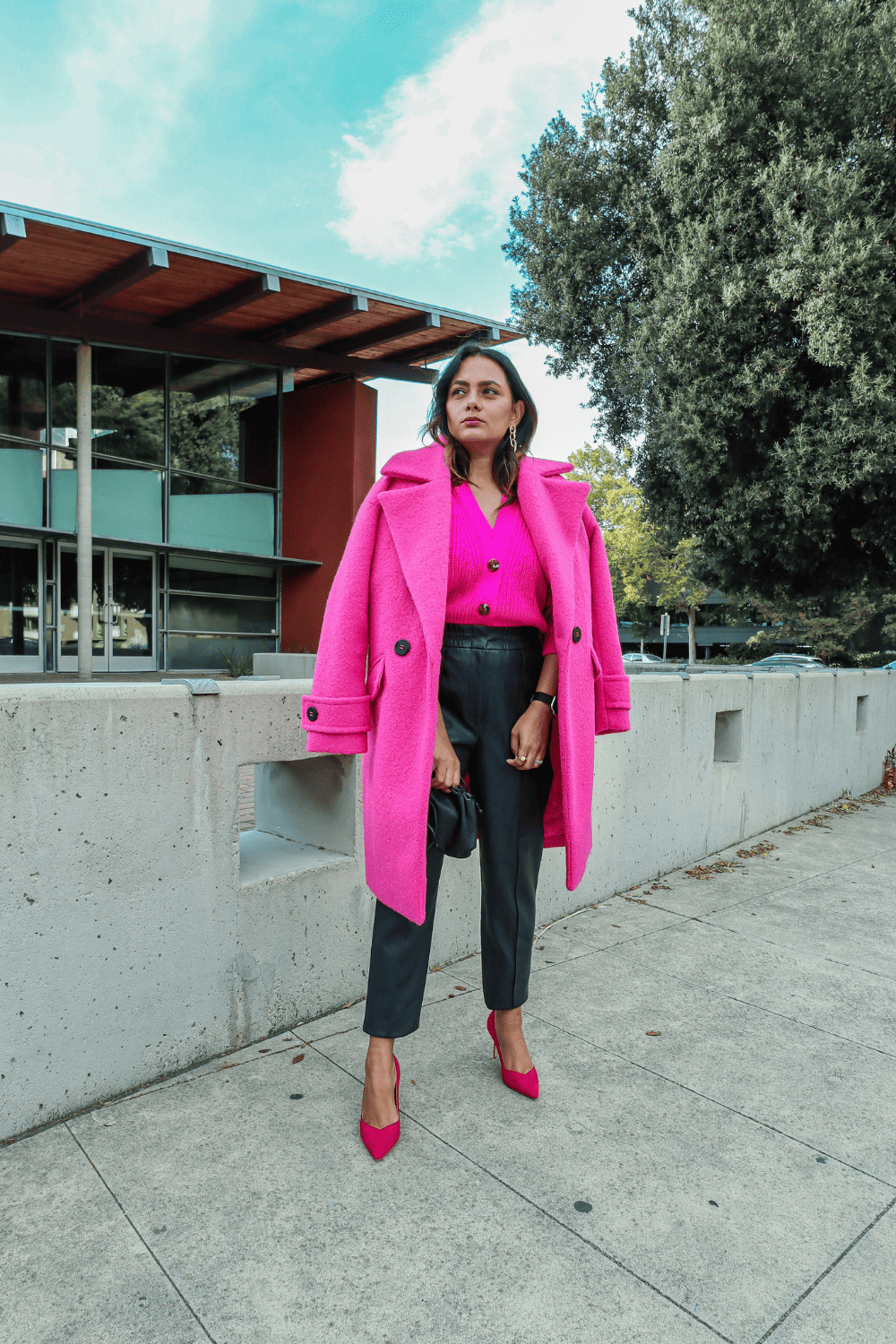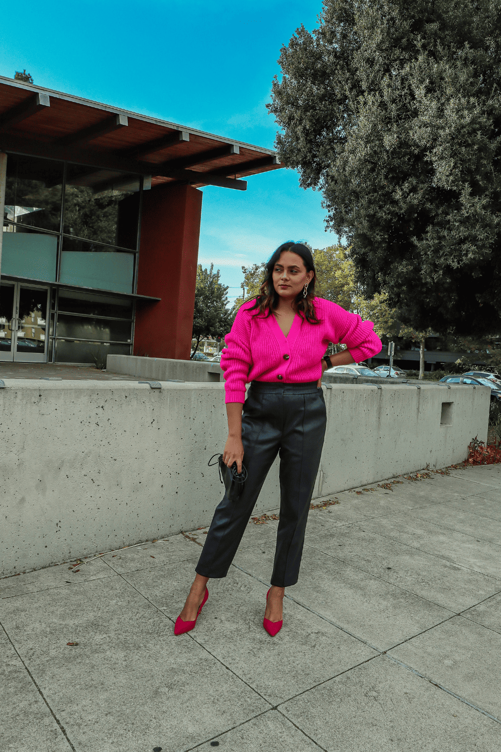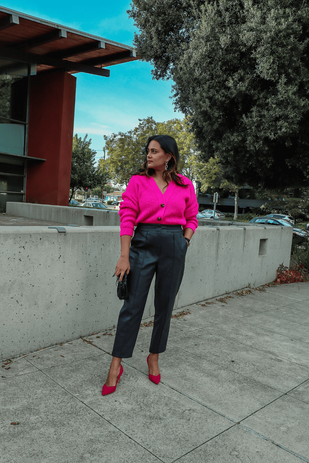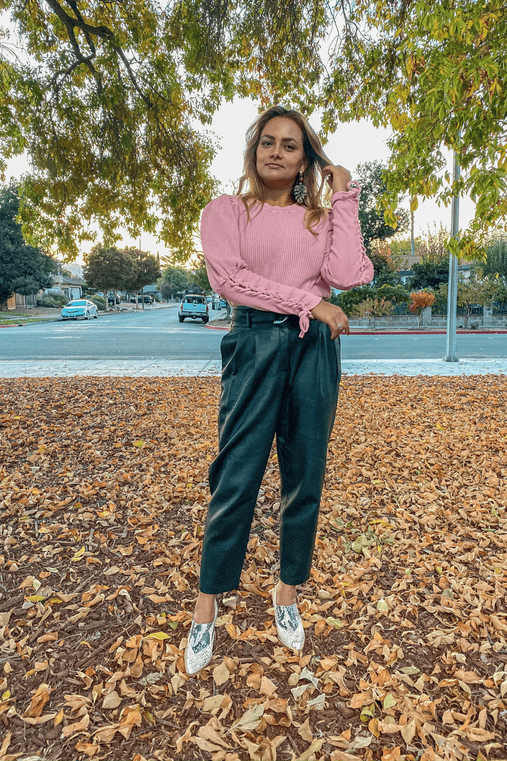 Adding a puff sleeve top brings a feminine vibe to a leather outfit. I literally wore this top so much last year because I loved the stitched details of the sleeves alongwith the puff sleeve. This actually helps minimize and accessories you want to wear because sometimes we cant be bothered.