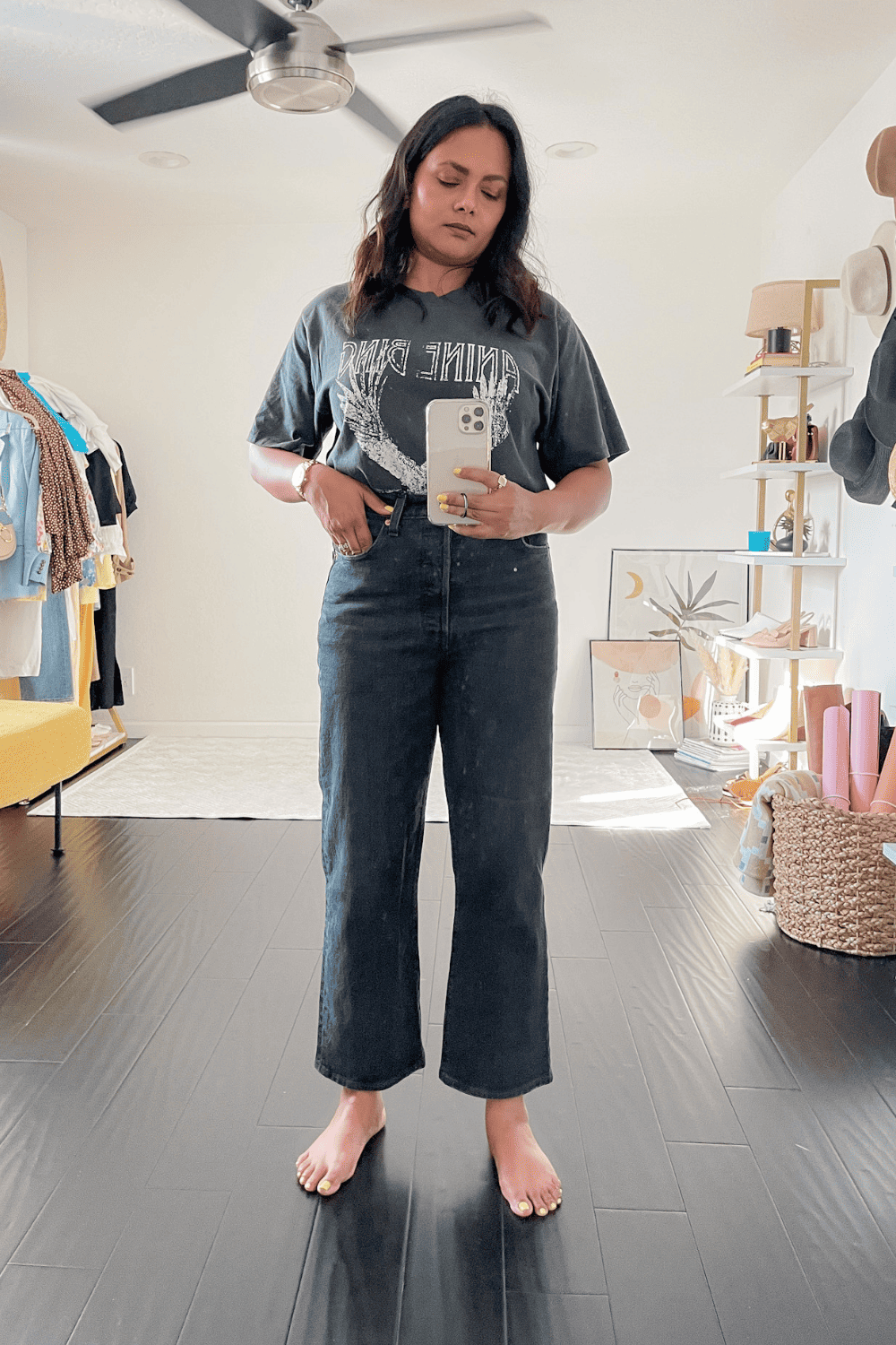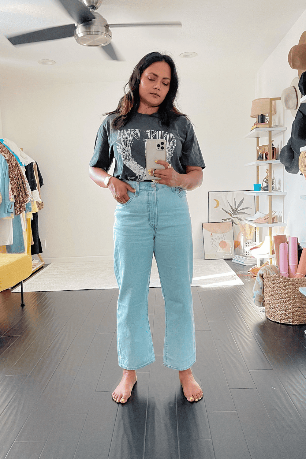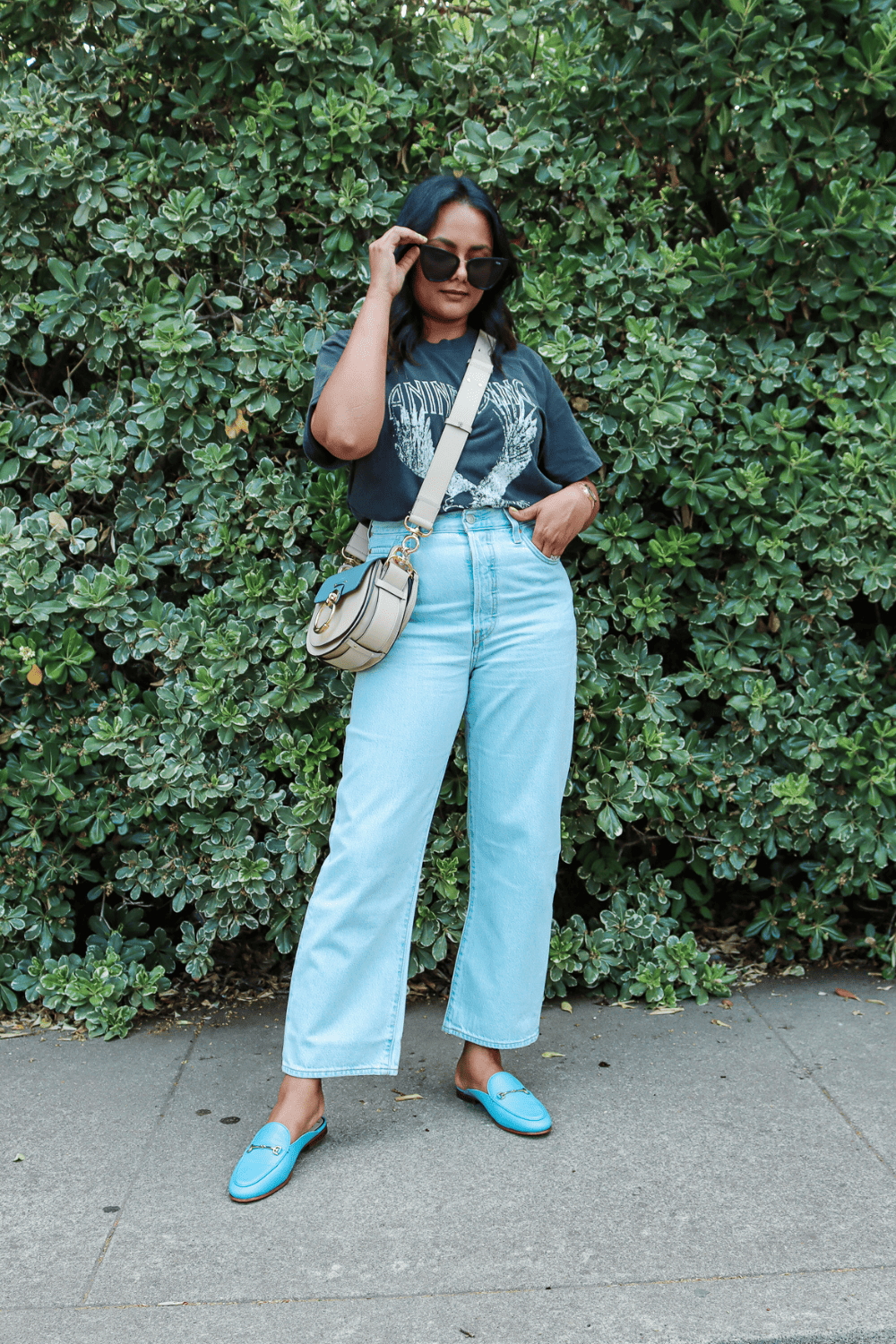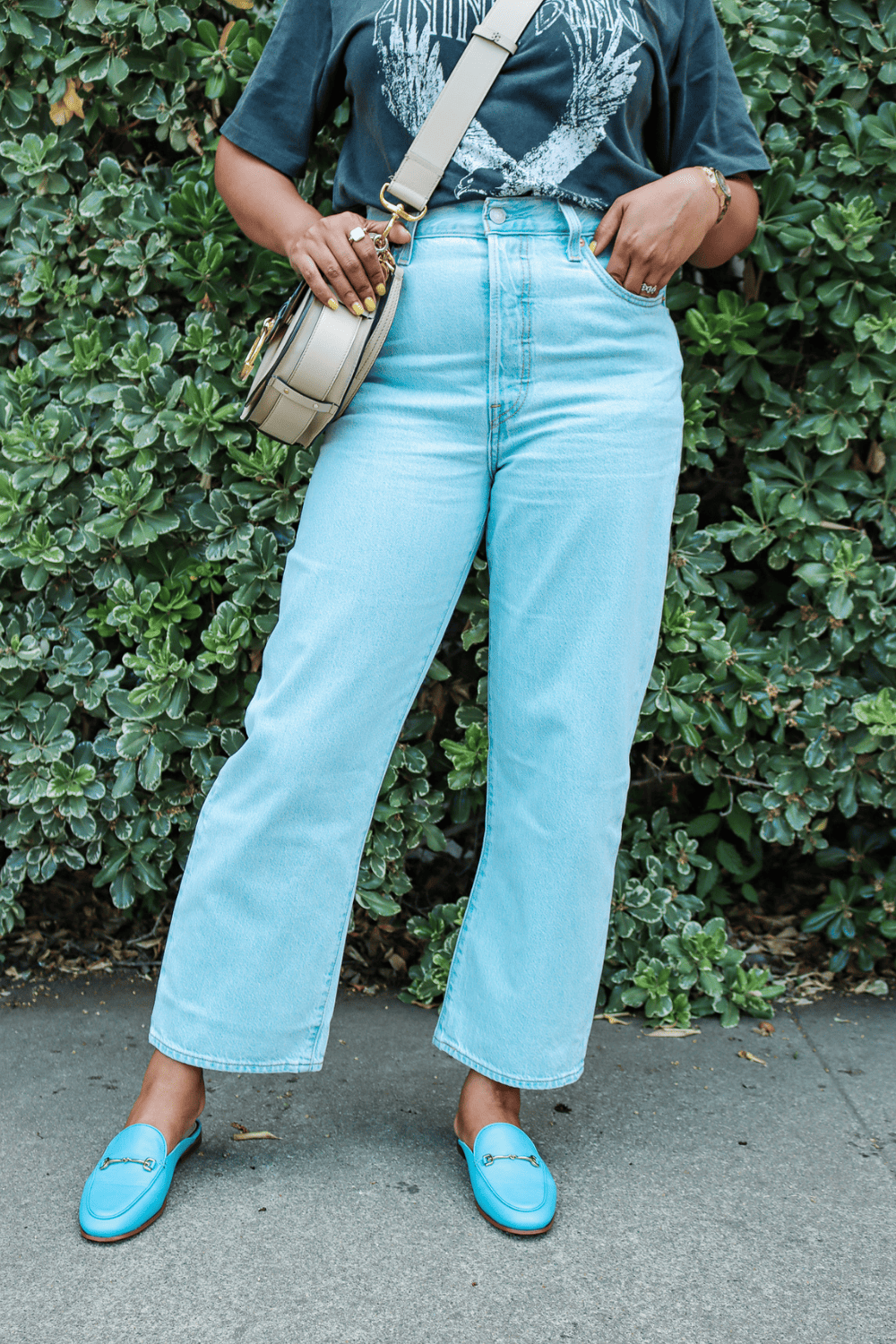Even though the jeans are super high waisted, the overall ankle length balances that with a bit of ankle show. This elongates your legs and I can honestly wear so many shoes with these jeans.
