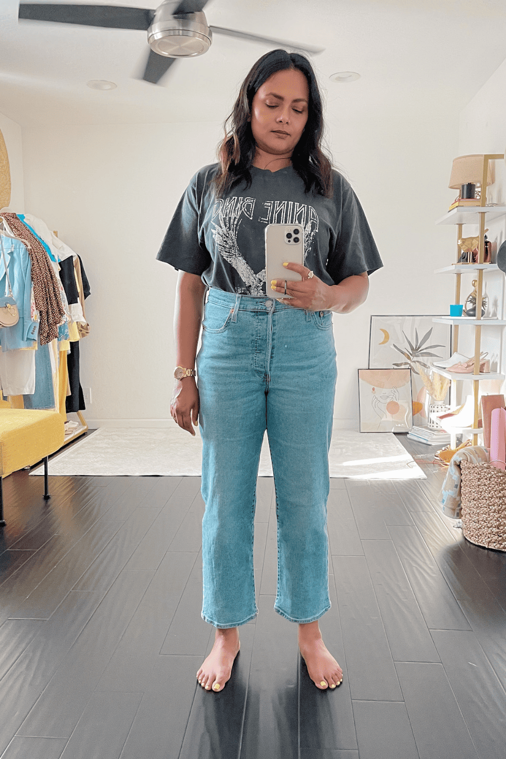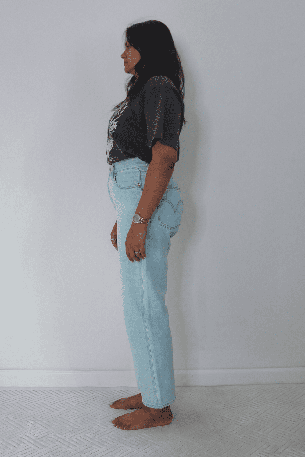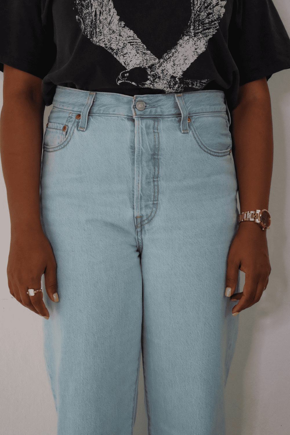 So, if you compare these jeans with the popular Pinch waist Jeans from Agolde, you can literally see what the pricing difference is. The Agolde pinch waist jeans are similar in style to the Levis ribcage jeans.
