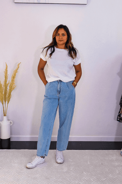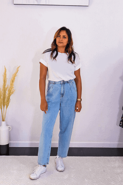 Swap Your Skinny Jeans with Slouchy Jeans. This is such a comfortable upgrade to your otherwise skin high jeans and in summer you will specially feel comfortable. And the pleats on the front give it a more trouser feel creating a business casual look in case you are heading to office.