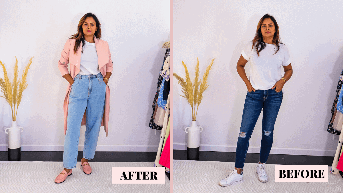 This first one had to be a Jeans and a T Shirt outfit because that is probably our most go to outfit for anything. And sometimes we just fallback to the same look over and over again. So, next time when you throw on your and Jeans and T-shirt, try the below easy steps: