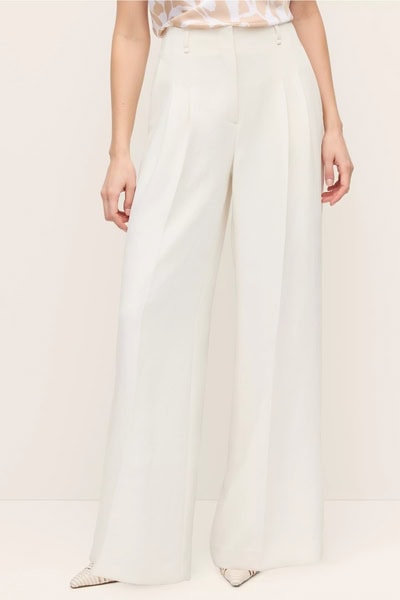 A Crisp White Tee + Flowing Ivory Trousers + White Sneakers