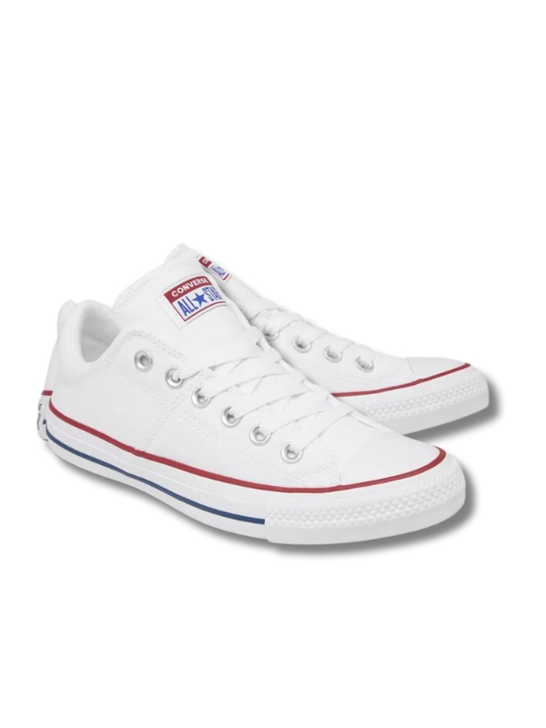 The white sandals create a monochrome look. If you have blue or navy sandals, they will also look great with them.
