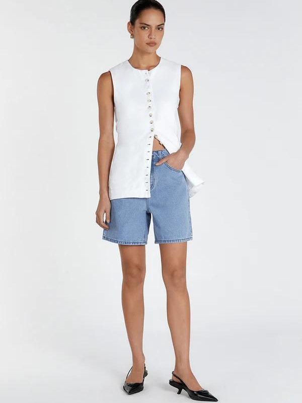 This outfit is more than simply well-fitting; it’s about the attitude it conveys. The shorts provide a fun summer twist, while the jacket gives a touch of refinement. The brown crossbody bag is the ideal partner for a hands-free day out, and the fabric of classic white sneakers gives a street-smart flare.