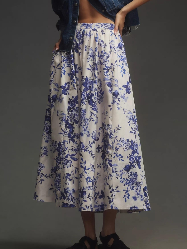 This is the influence of a neatly fitted navy blue suit. A traditional double-breasted blue blazer, which immediately raises your appearance, serves as the focal point of this ensemble. It’s worn with a pleated skirt embroidered with colorful flower motifs in shades of pink and green, creating a striking contrast that draws attention and ignites discussions. This skirt gracefully travels along the boundary between assertive and fun rather than merely flirting with it.