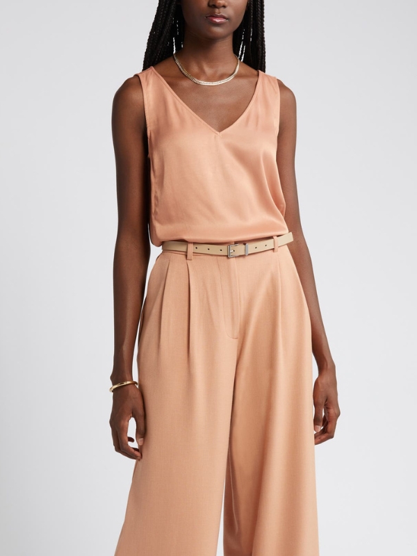 The satin pants add a classy and expensive touch to the outfit, but they also make it special occasion appropriate.