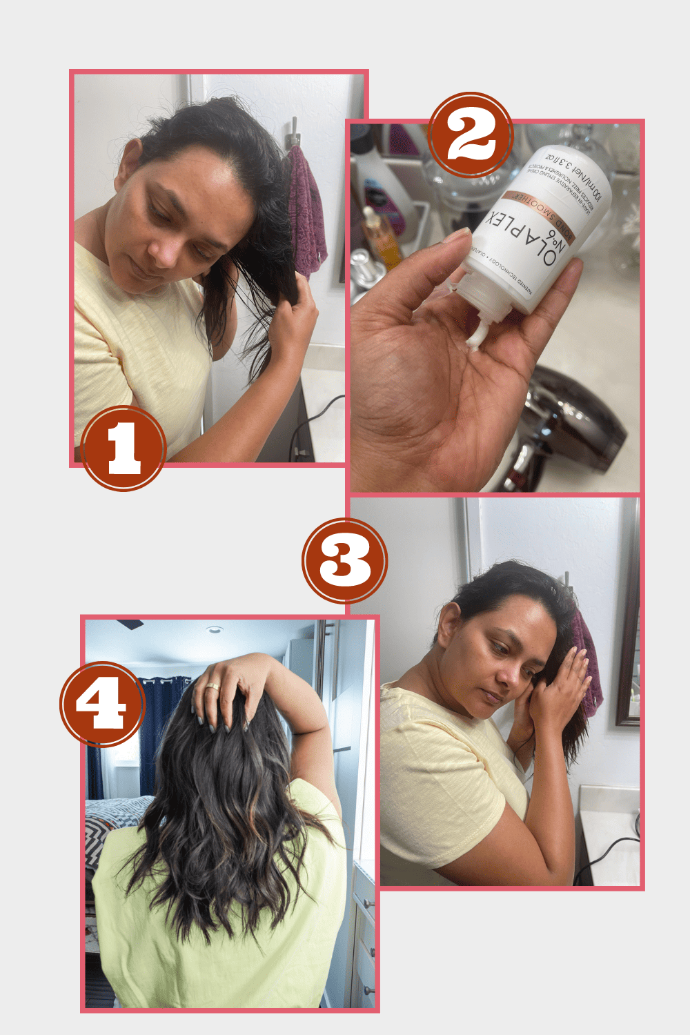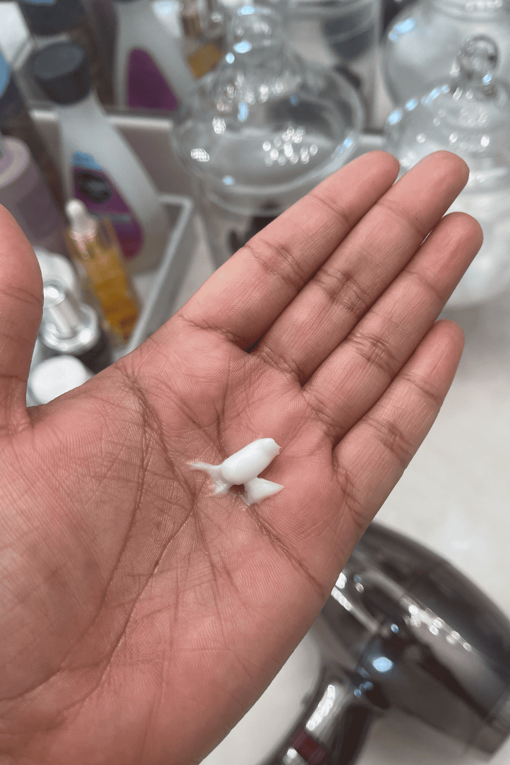 After wash and towel drying my hair, I take a little bit of the olaplaex no. 6. The bottle is pretty tight, which actually helps with controlling how much you should take out. This is a bonus for me, because I am always in a hurry and sometimes don’t bother paying attention to all this.