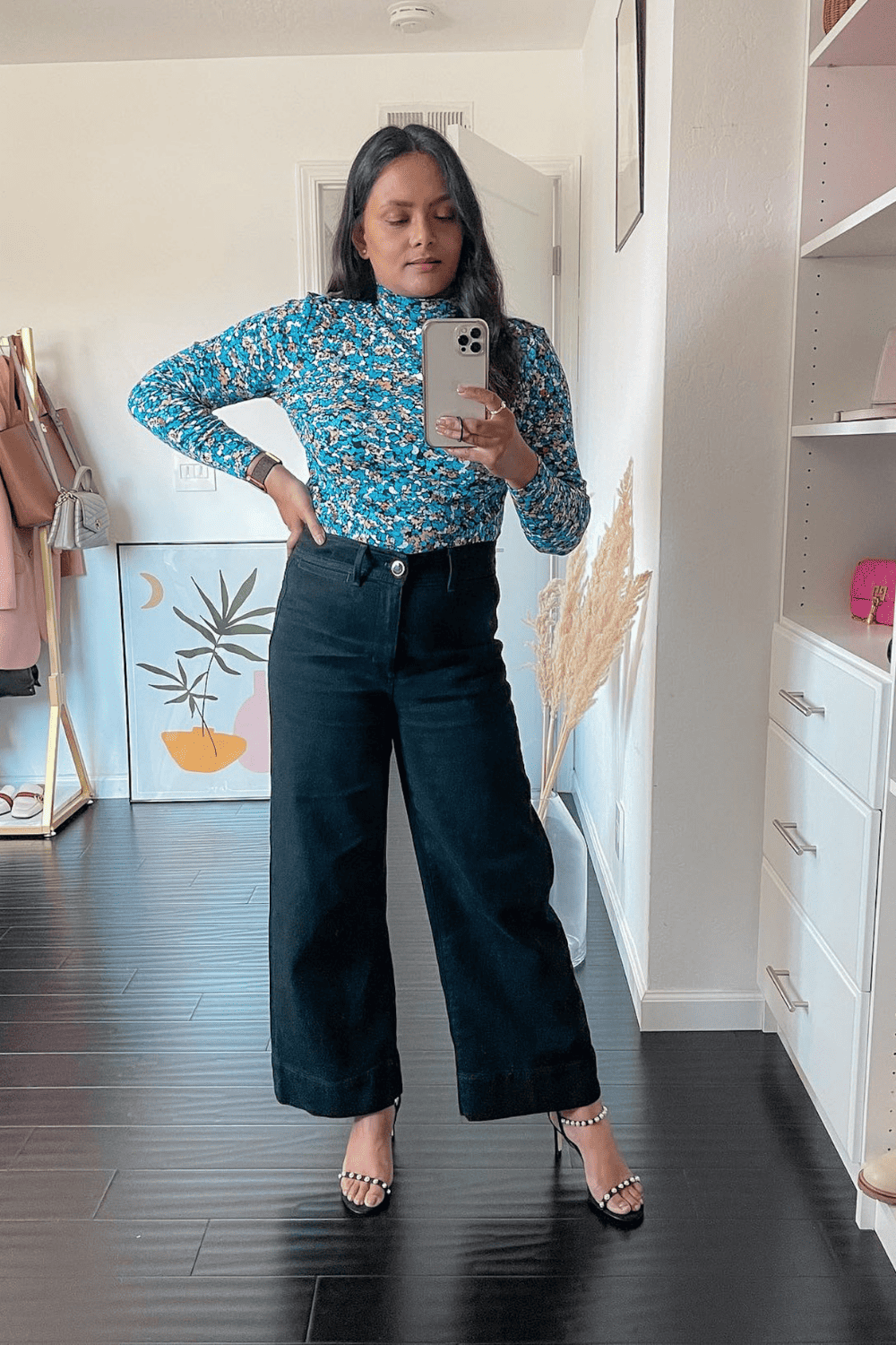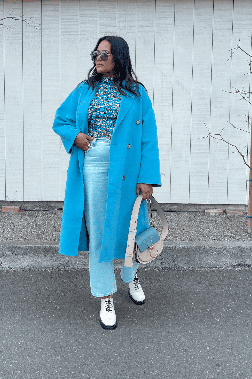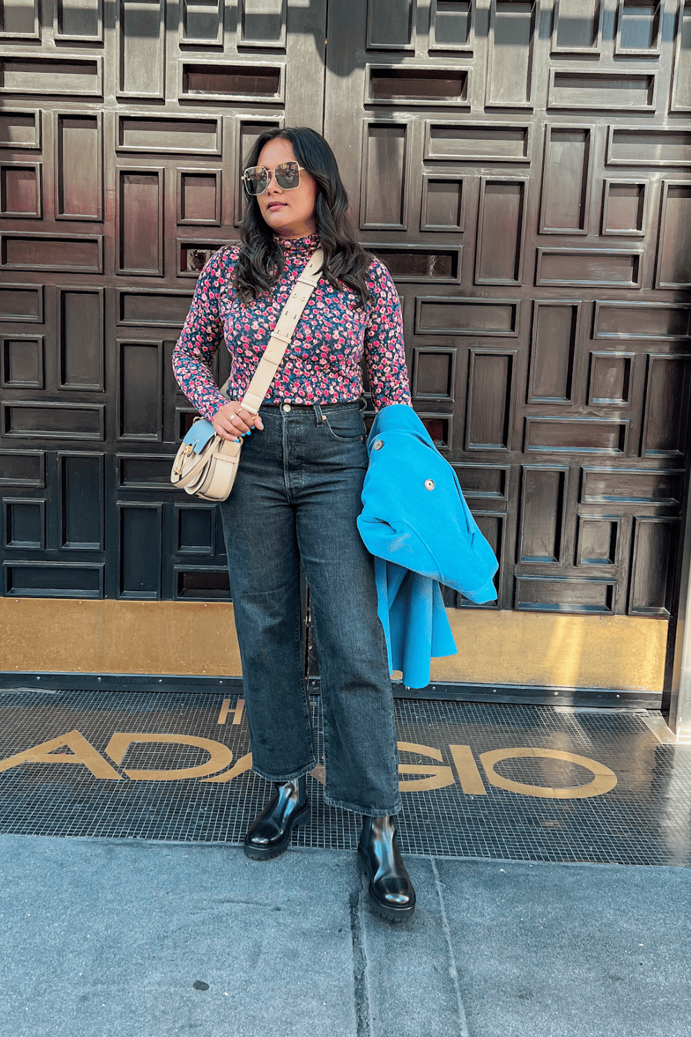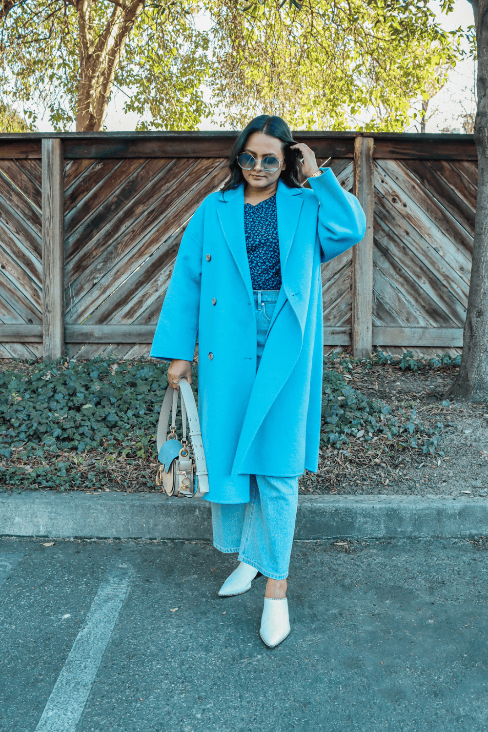 This is my favorite way of staying on trend and on season without really switching out my outfit formula. In winter I would wear a black jeans and top, but I use the same outfit combination in spring by switching the color. Instead of black jeans, I would pick blue jeans.