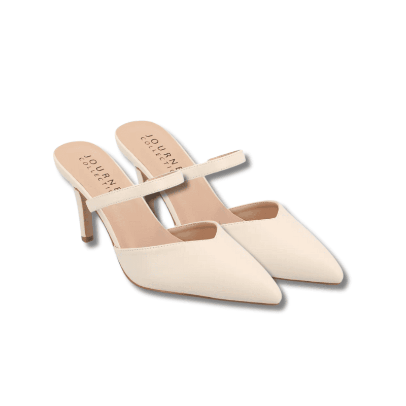 Mules are your best friend. It provides ample support without the constraint of straps, allowing your feet to breathe while offering a stable base. Just make sure to choose a pair that fits well to avoid any discomfort. Opt for mules with a slightly pointed toe to add an extra touch of sophistication and to balance out your body’s natural curves.